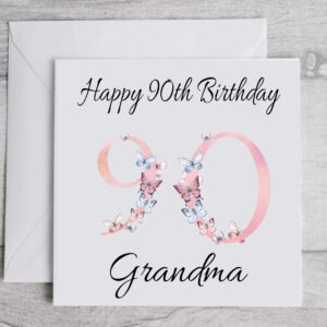 90th Birthday Card Butterflies, Any Name Milestone age, Happy birthday Personalised Greetings Recycled Card, Eco Friendly, aunt mum grandma