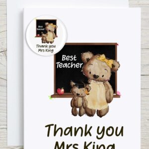 Best Teacher Female Card with Badge – Personalised teacher. Thank you customised badge. Special teacher support TA Support teacher.