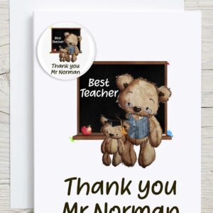 Best Teacher Male Card with Badge – Personalised Man teacher. Thank you customised badge. Male Special teacher support TA Support teacher