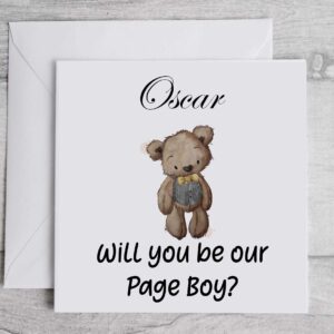 Will you be my PAGE BOY card. Cute floral teddy card asking a child junior adult, for him, personalised, Proposal Keepsake , wedding