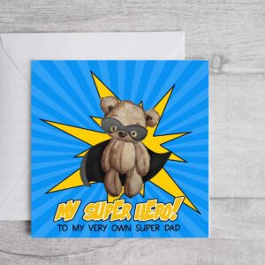Super Hero Dad Superhero Teddy Card. Card from Son Daughter to Daddy, Birthday Card Fathers day greetings card gift, eco friendly recyclable