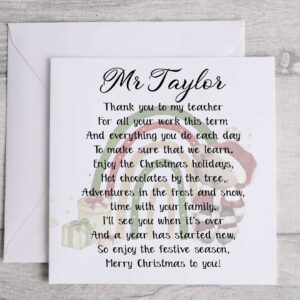 Christmas Card for Teacher with Poem Eco Friendly Male Female Thank You Sentimental Greetings Card Keepsake