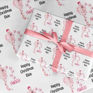 Christmas Flamingo fa la la la la wrapping paper. Personalised A3 eco friendly thick quality gift wrap paper for christmas Customised family