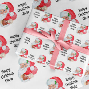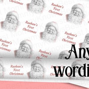 Christmas wrapping paper Sketched SANTA Gift ROLLS Personalised eco friendly thick quality gift wrap Customised baby’s 1st xmas ANY Wording
