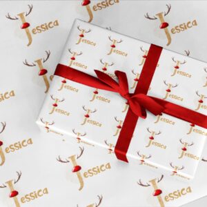 Christmas Red nose antlers rainbow wrapping paper ROLLS Personalised A3 eco friendly thick quality gift wrap paper Customised family