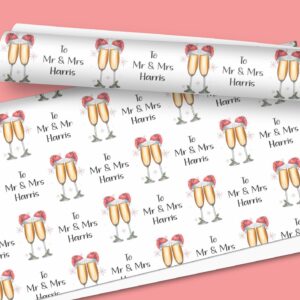 Christmas Champagne Glasses wrapping paper . Personalised A3 ROLLS eco friendly thick quality gift wrap paper for Christmas, Any wording