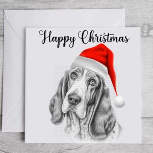 Bassett Hound Christmas Card Eco Friendly Greetings Card Dog Lover Packs Family Gifts Bulk Buy Xmas