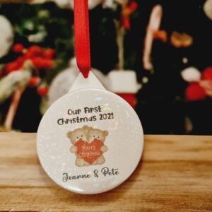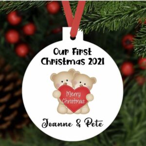 Personalised our first Christmas as couple bauble year 2021 aluminium Customised tree decoration keepsake Xmas gift present engaged married