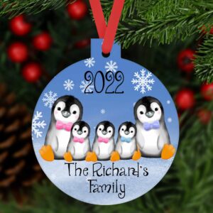 Penguin family Christmas bauble year 2022 aluminium Customised tree decoration keepsake gift present personalised family adults and children