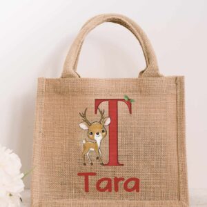 Christmas cute reindeer JUTE bag. Present for her Reusable gift. Eco Friendly lunch Bag life sister daughter secret santa lunch bag
