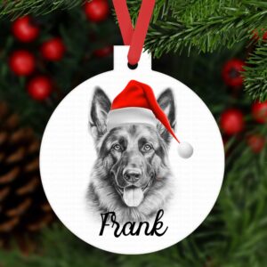 German Shepherd Christmas bauble ornament aluminium. Alsatian Customised tree decoration keepsake Dog Xmas gift present sketched sketchy