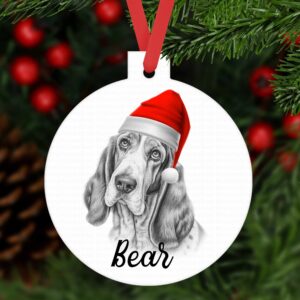 Bassett Hound Christmas bauble ornament aluminium. Customised tree decoration Personalised keepsake Dog Xmas gift present sketched sketchy