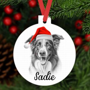 Border Collie Christmas bauble ornament aluminium. Customised tree decoration keepsake Dog Xmas gift present sketched sketchy