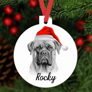 Bull Mastiff Christmas bauble ornament aluminium. Customised tree decoration Personalised keepsake Dog Xmas gift present sketched sketch