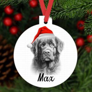 NEWFOUNDLAND dog bauble ornament aluminium. Customised tree decoration Personalised keepsake Dog Xmas gift present sketched sketch