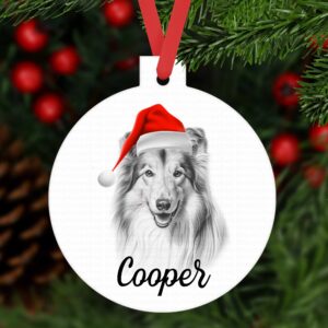 Rough Collie bauble ornament aluminium. Customised tree decoration Personalised keepsake Dog Xmas gift present sketched sketch