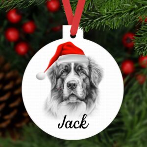SAINT BERNARD bauble ornament aluminium. Customised tree decoration Personalised keepsake Dog Xmas gift present sketched sketch