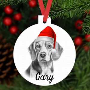 Beagle Christmas bauble ornament aluminium. Customised tree decoration keepsake Dog Xmas gift present sketched sketchy
