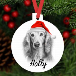 SALUKI bauble ornament aluminium. Customised tree decoration Personalised keepsake Dog Xmas gift present sketched sketch