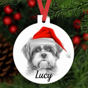 SHIH TZU bauble ornament aluminium. Customised tree decoration Personalised keepsake Dog Xmas gift present sketched sketch SHIHTZU
