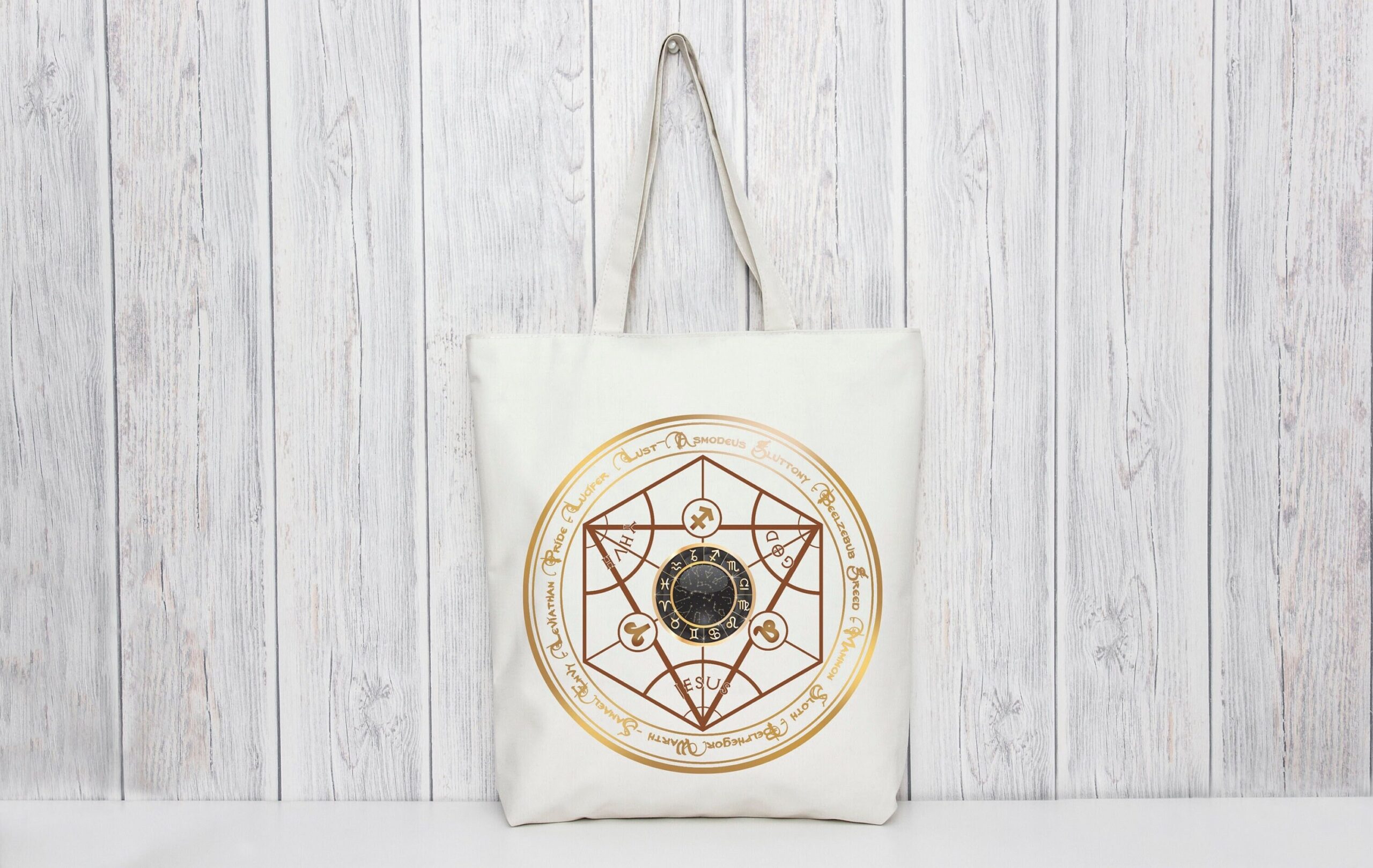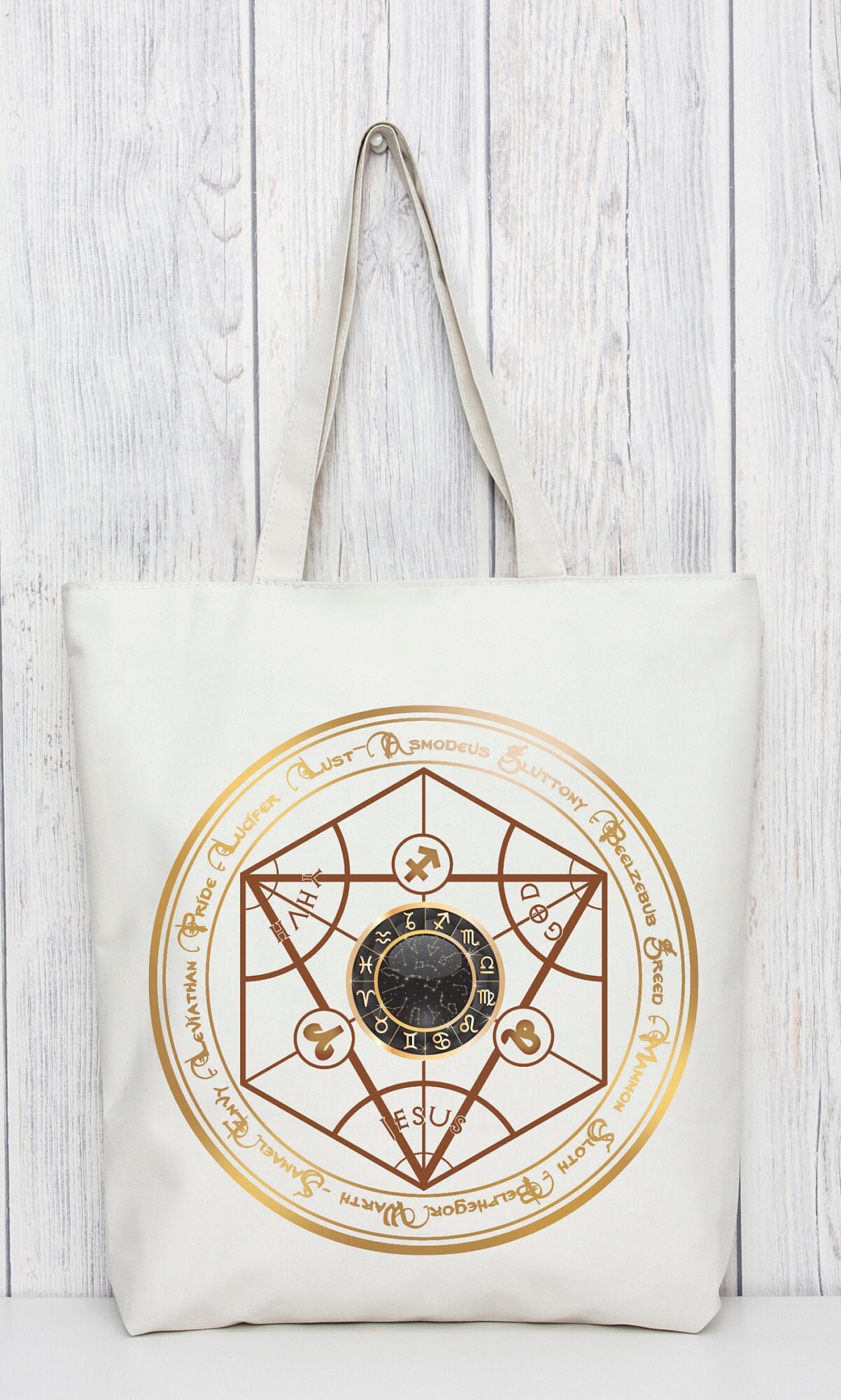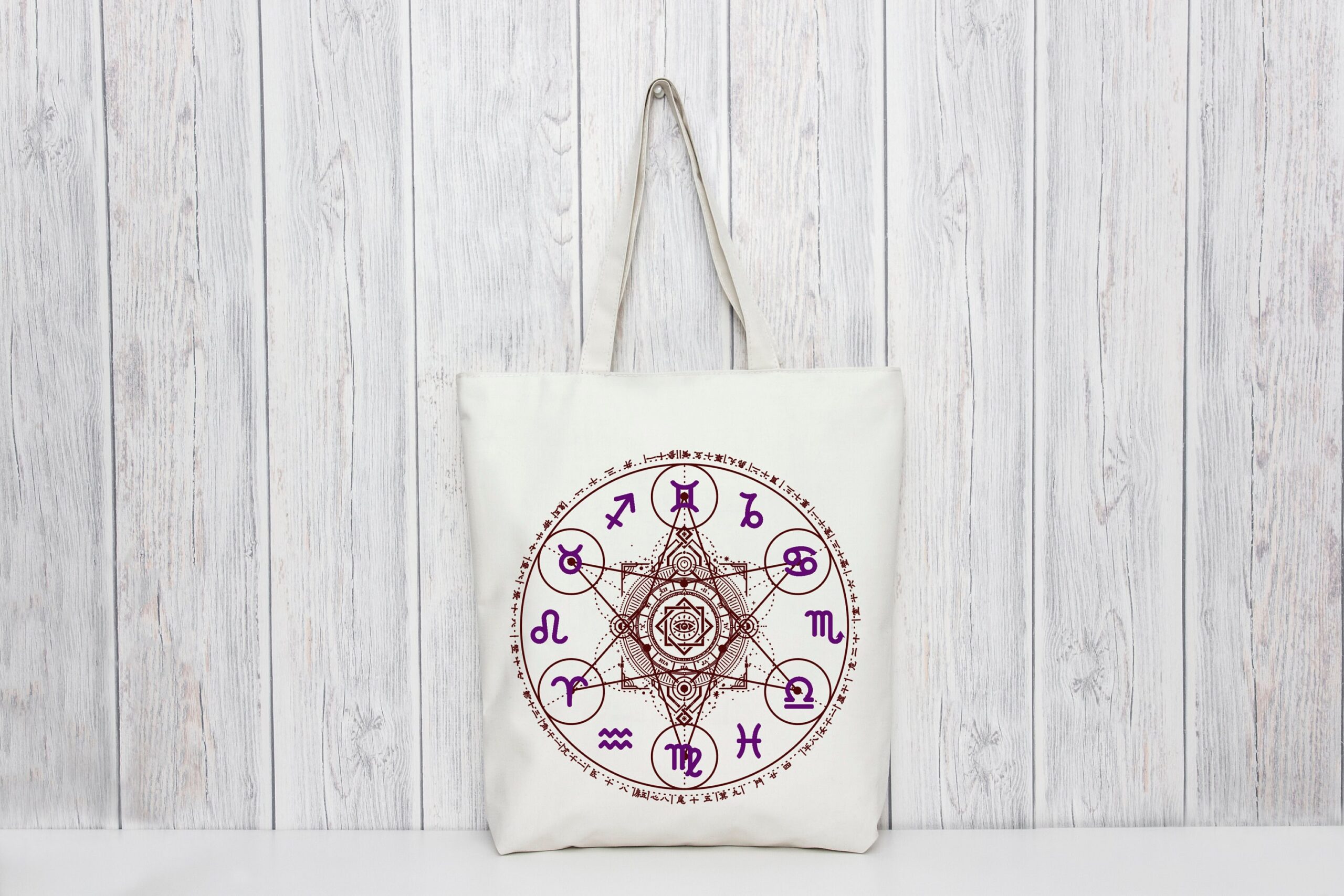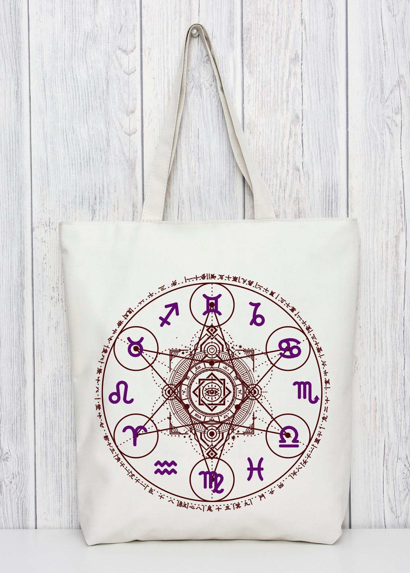White/Cream Tote Bag with long strap decorated Astrological Tarot Cards designs