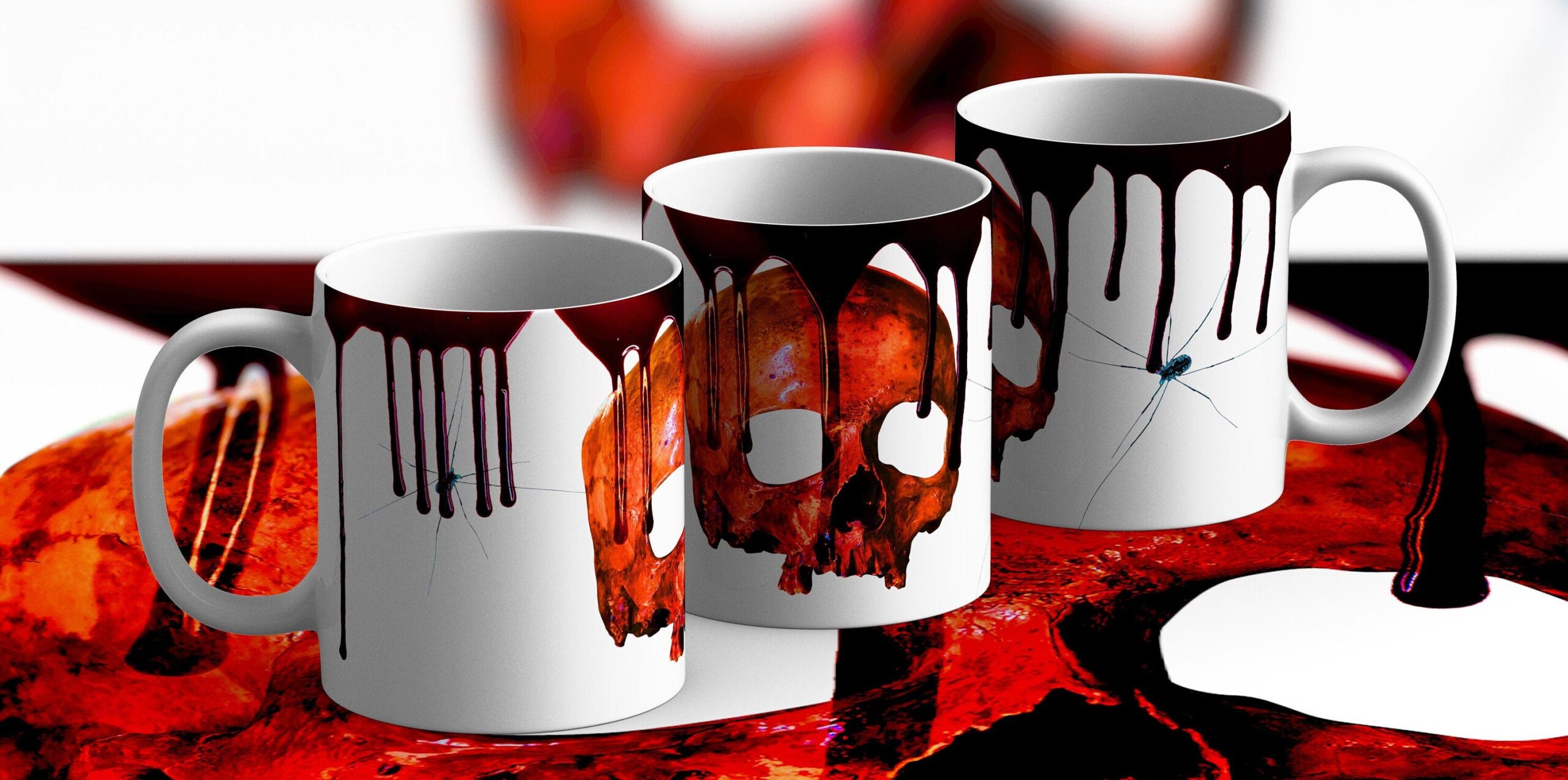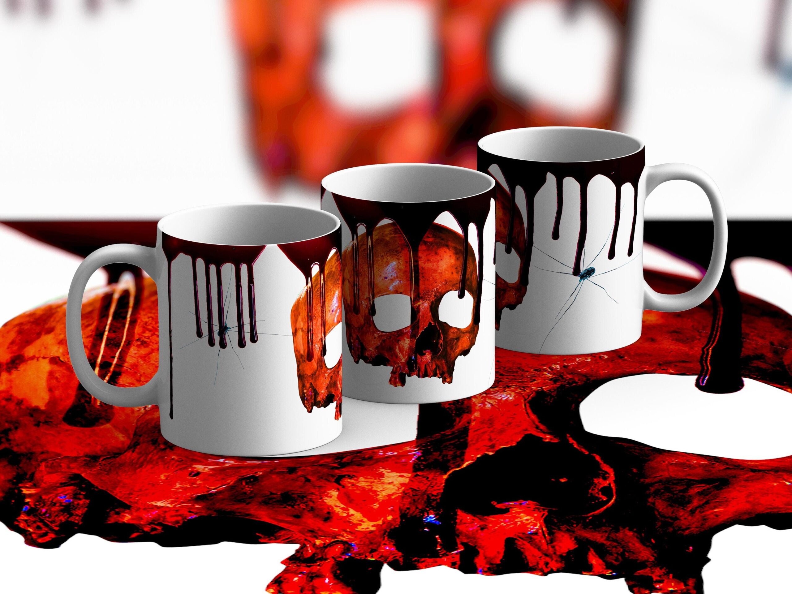 Bleeding Skull Mug, Horror gift for self, him or her. Halloween Christmas and Birthday present idea. Horror Lover Blood Gothic. Secret Santa