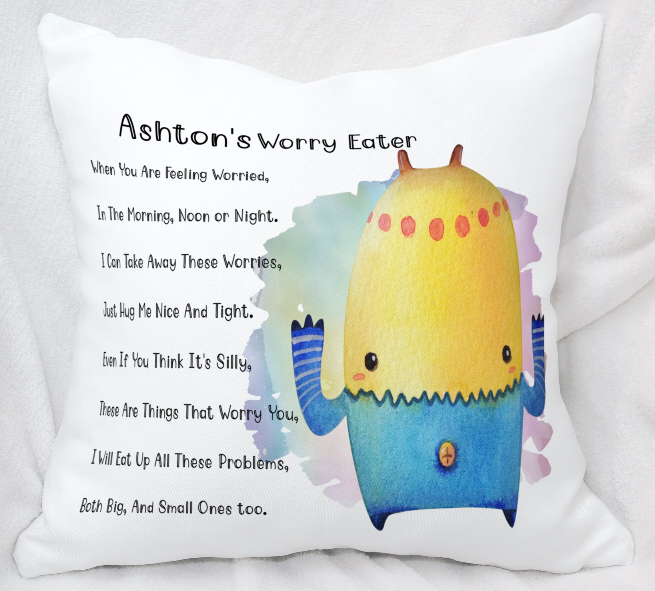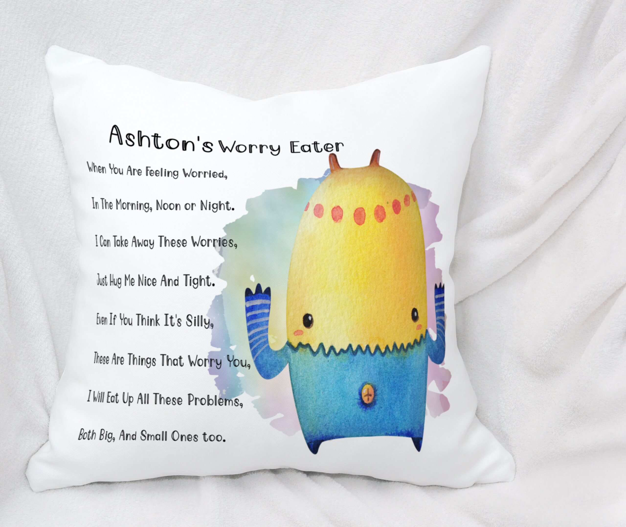 Blue & Yellow Monster Personalised Worry Eater Cushion for Children