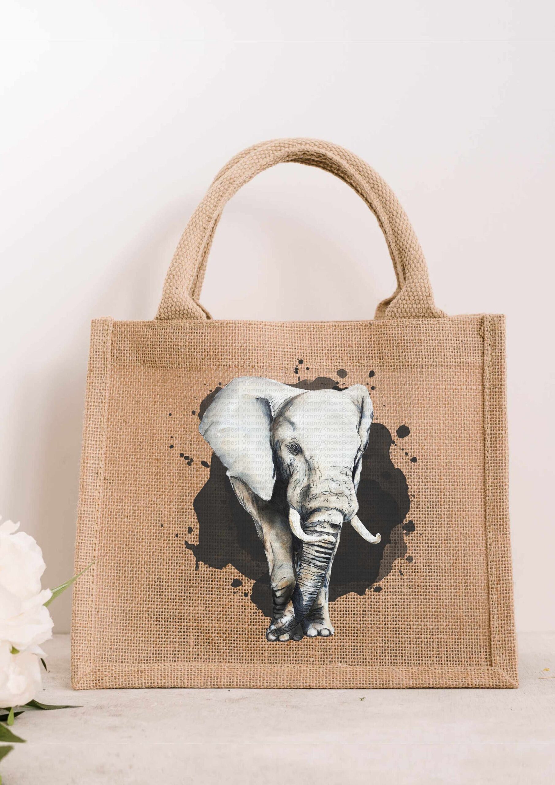 Bold Elephant JUTE bag. Present for her. Reusable gift Eco Friendly lunch Bag life sister daughter secret santa lunch gift bag birthday