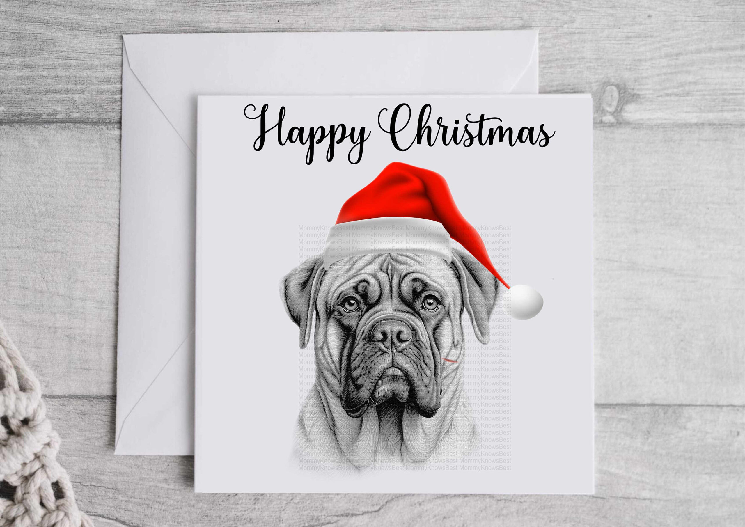Happy Christmas BULL MASTIFF Dog Greeting Card