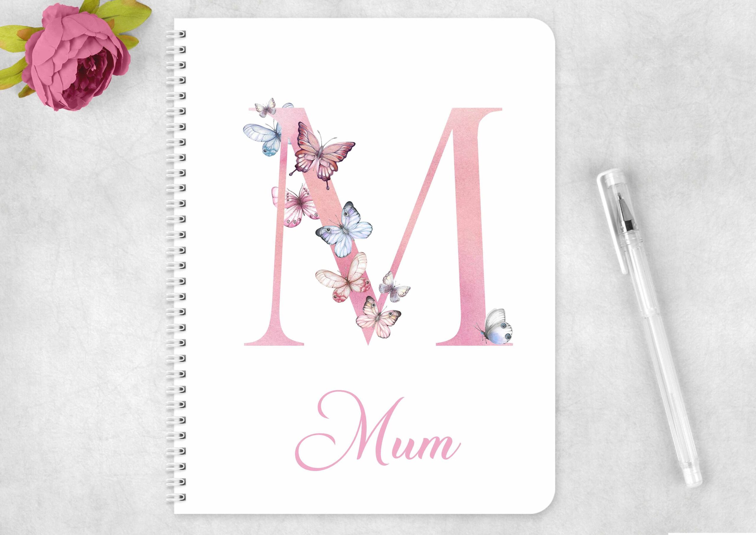Butterfly Initial personalised notes notebook Recyclable eco friendly notepad Wire book journal Birthday Mothers day Christmas gift her mum