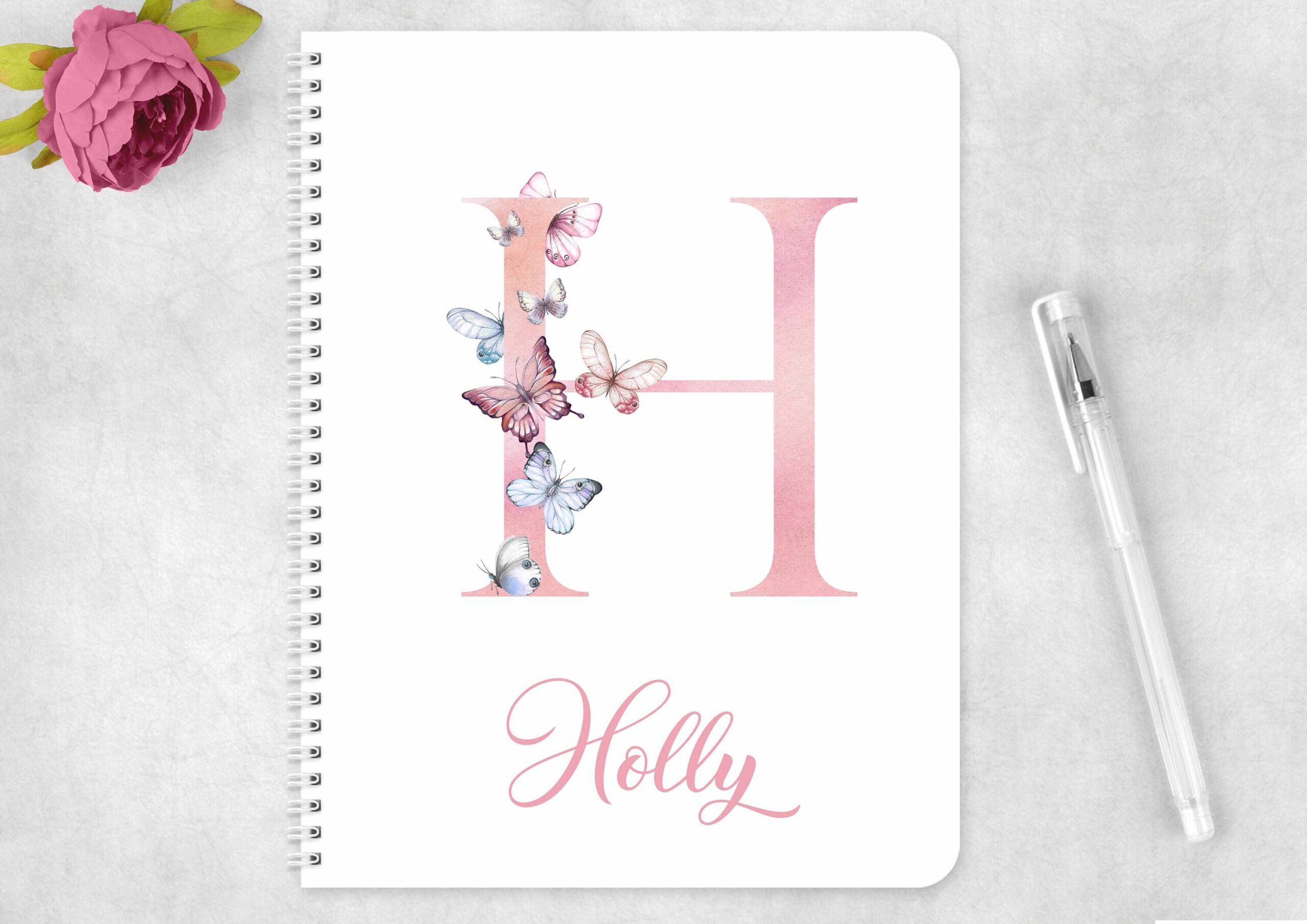 Personalised initial butterfly notes notebook, personalised with any name.