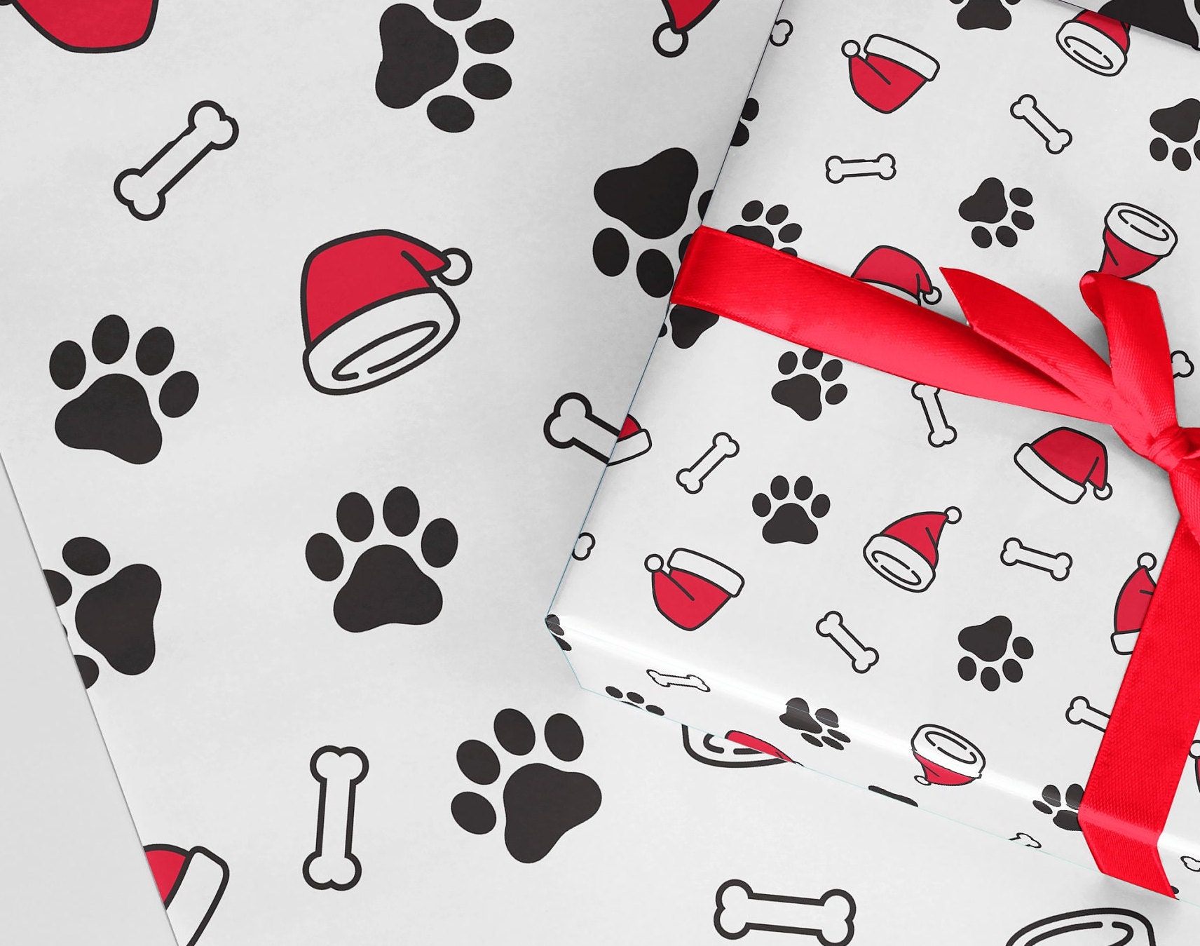 Christmas dog wrapping paper A3 & ROLLS eco thick quality gift wrap Christmas Customised dog lover present wrap dog cat paws pet lover gift