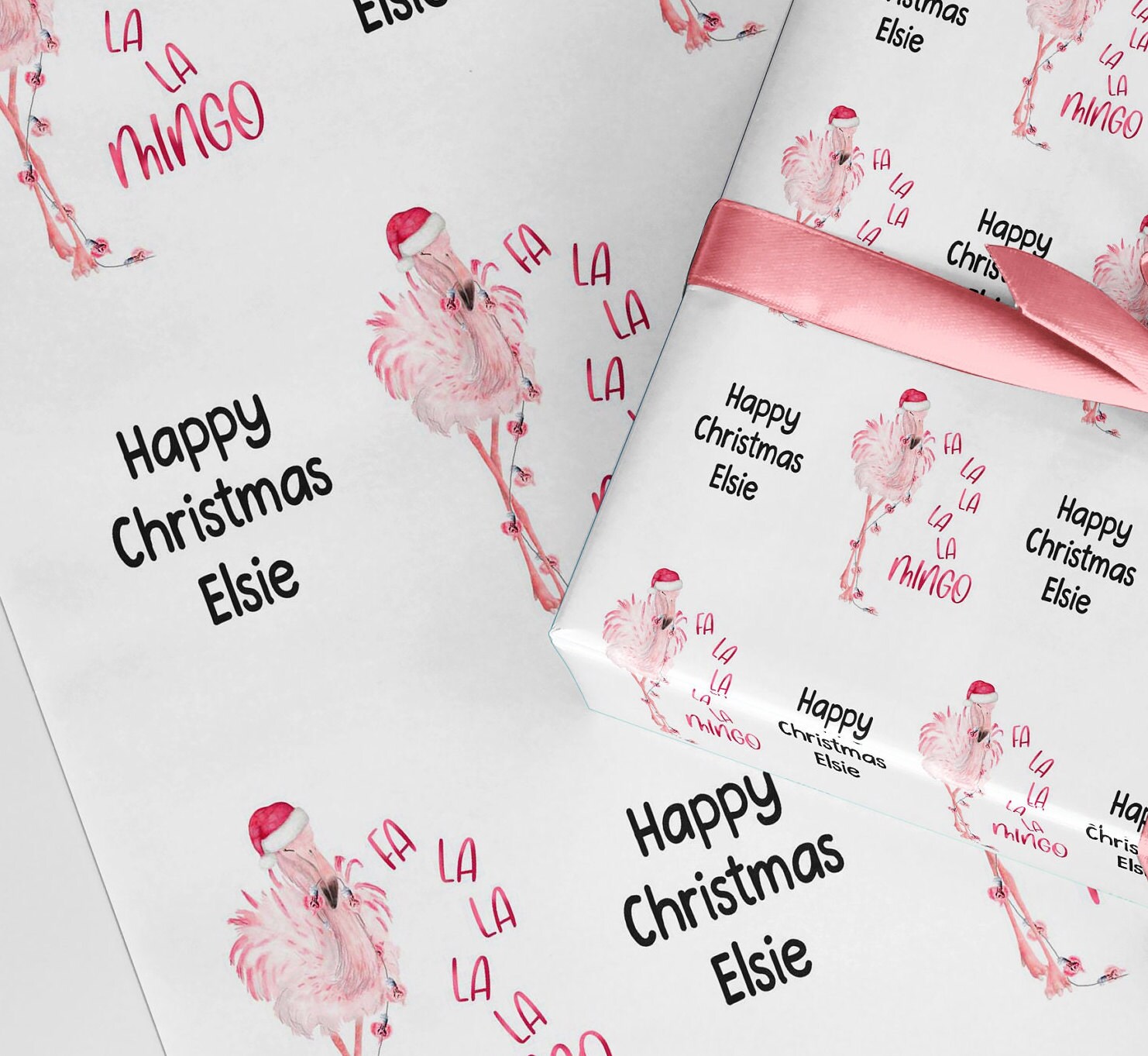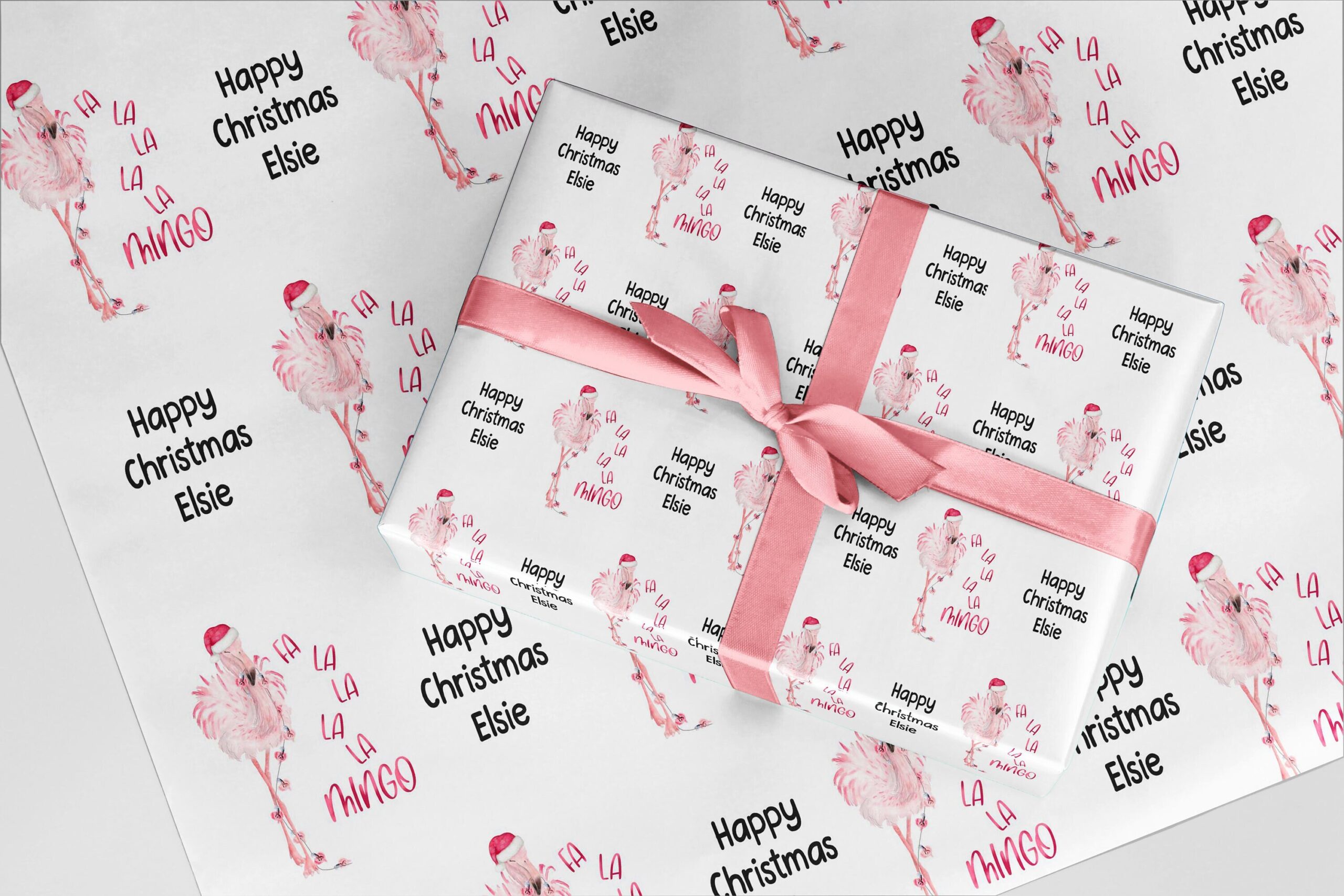Christmas Flamingo fa la la la la wrapping paper. Personalised A3 eco friendly thick quality gift wrap paper for christmas Customised family