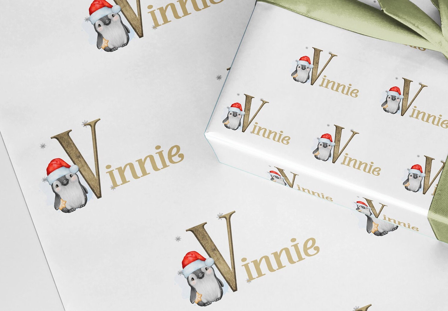 Christmas penguin wrapping paper -Christmas present wrapping personalised with any wording