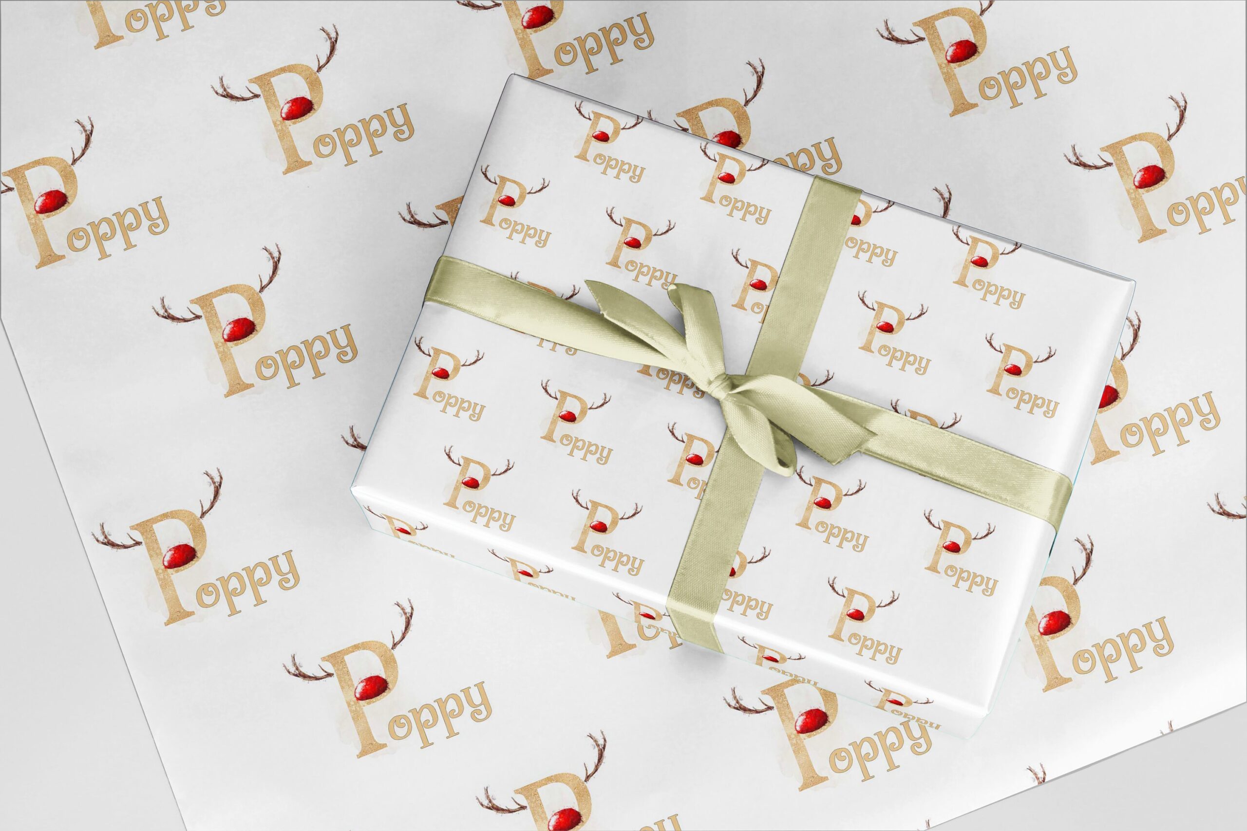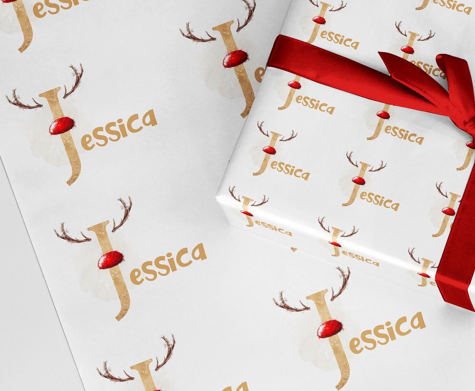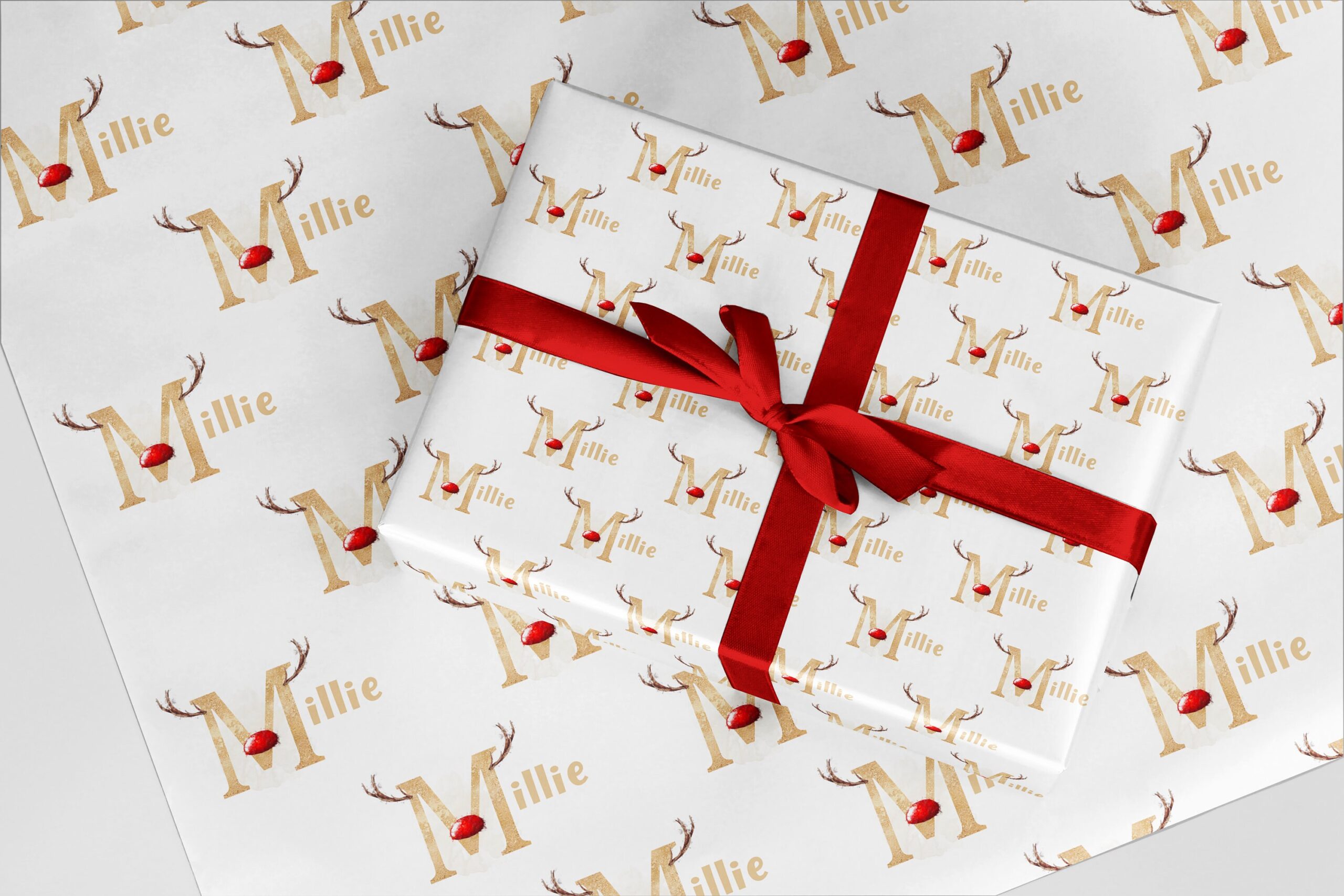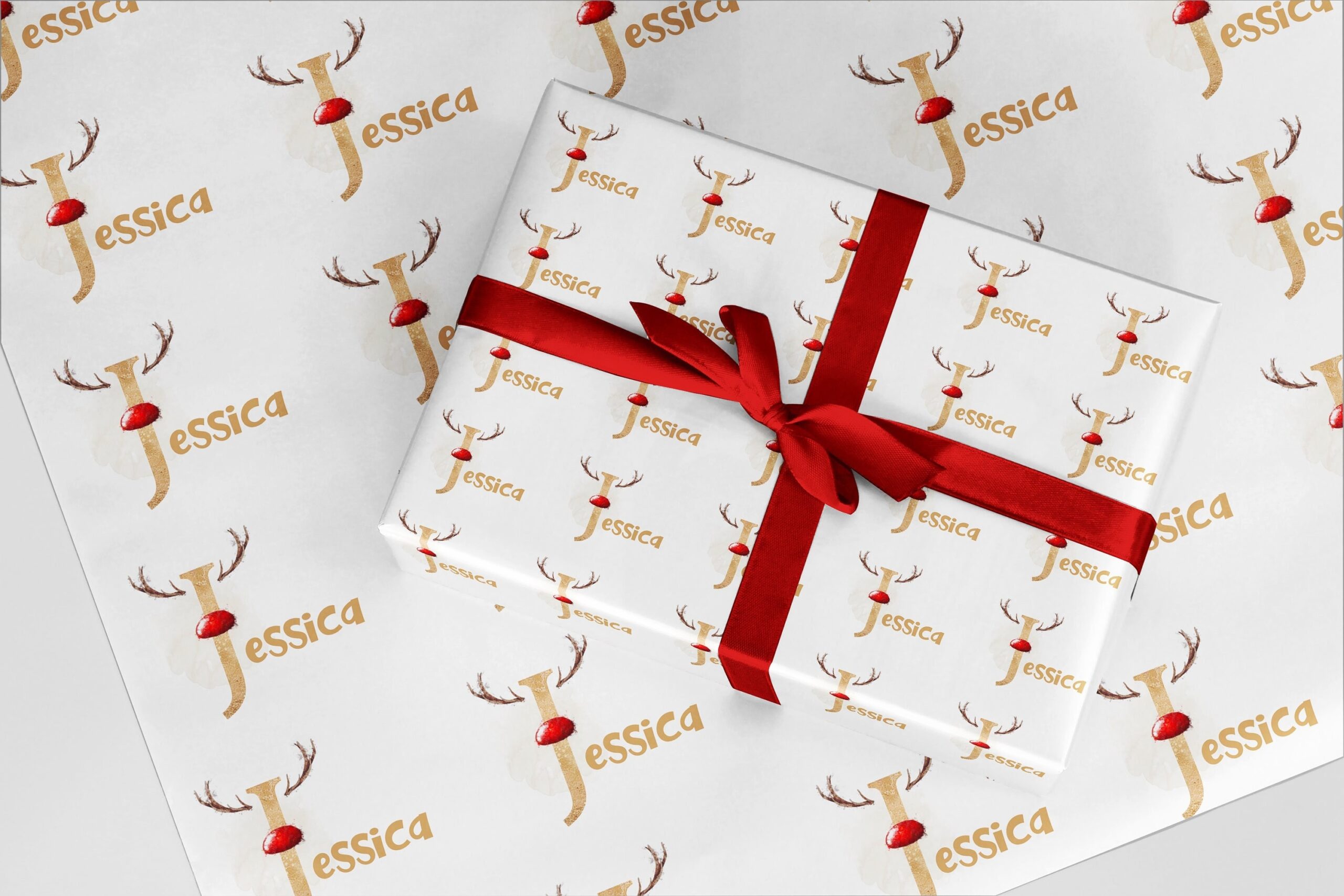 Christmas red nose with antlers wrapping paper -Christmas present wrapping personalised with any name.