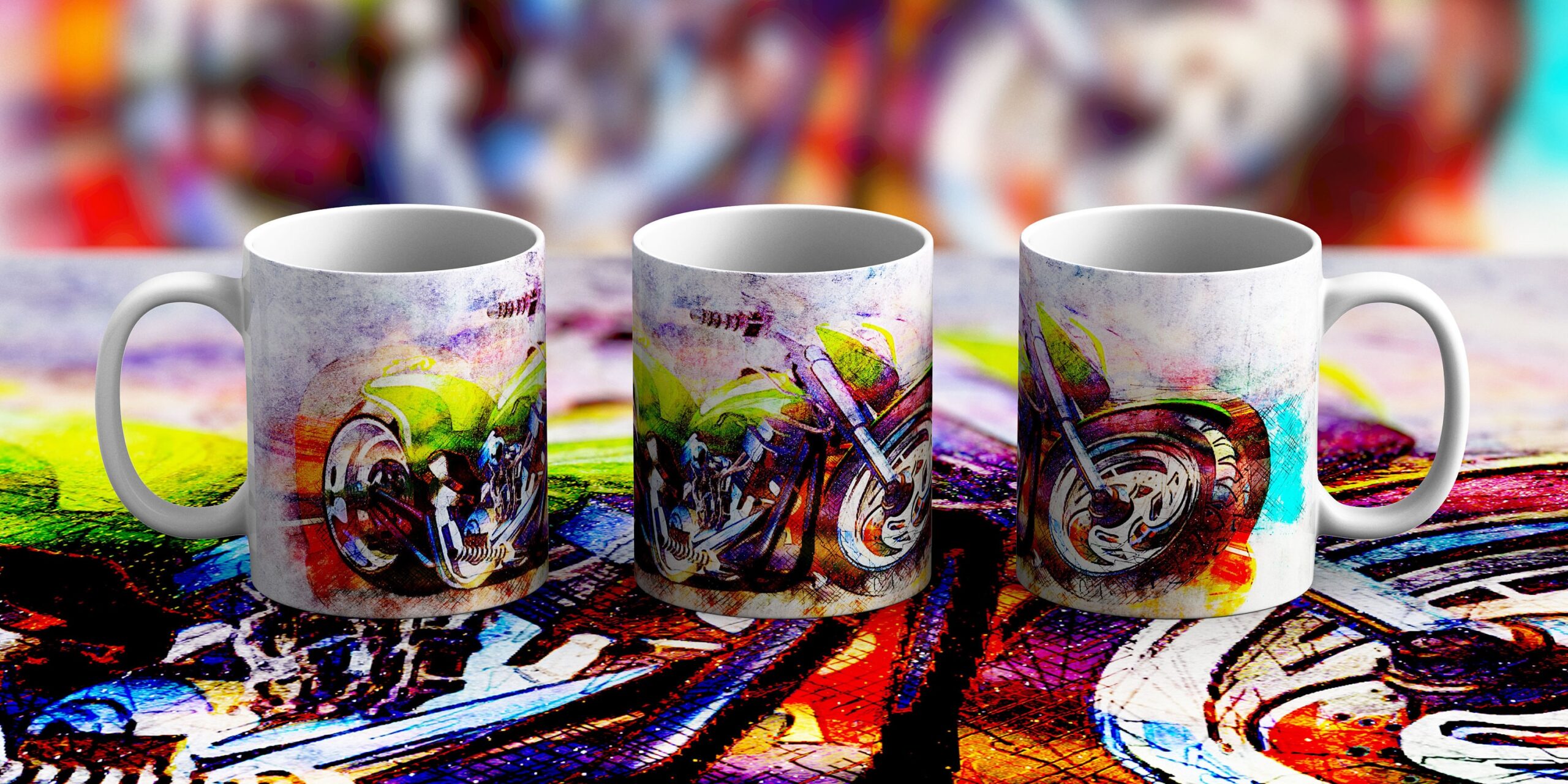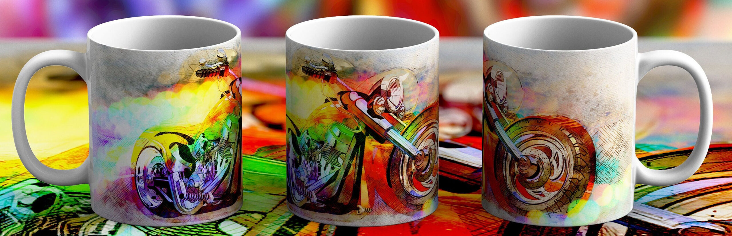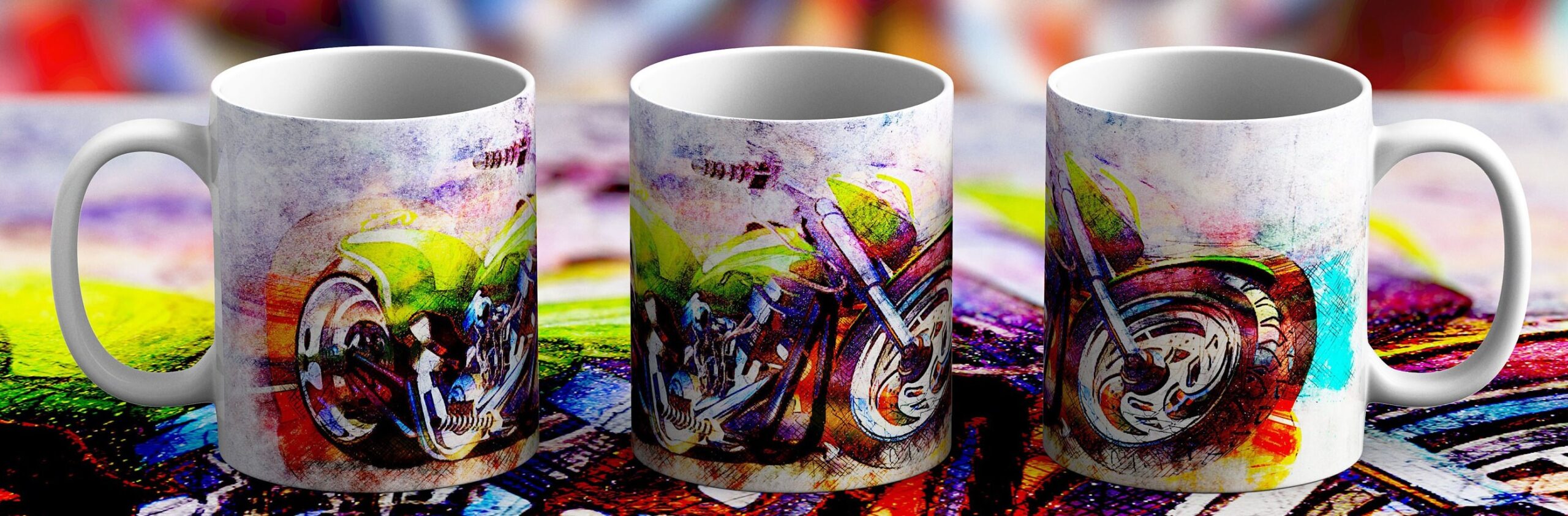 10oz ceramic white mug. Image is printed on both sides of the mug.