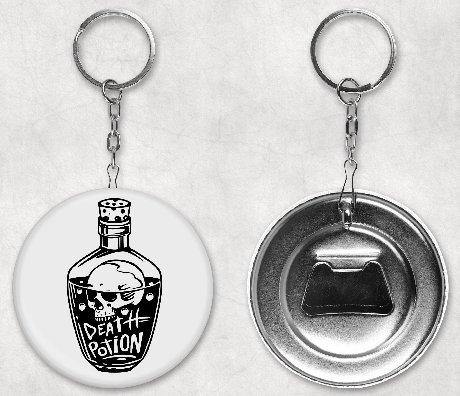 Image is on the front with metal bottle opener and keyring chain on the reverse.