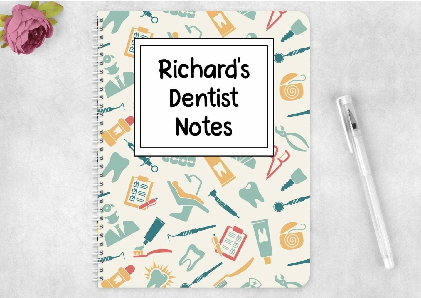 Dentist notes notebook, personalised with any name. Wording can also be changed (eg trainee dental nurse etc)