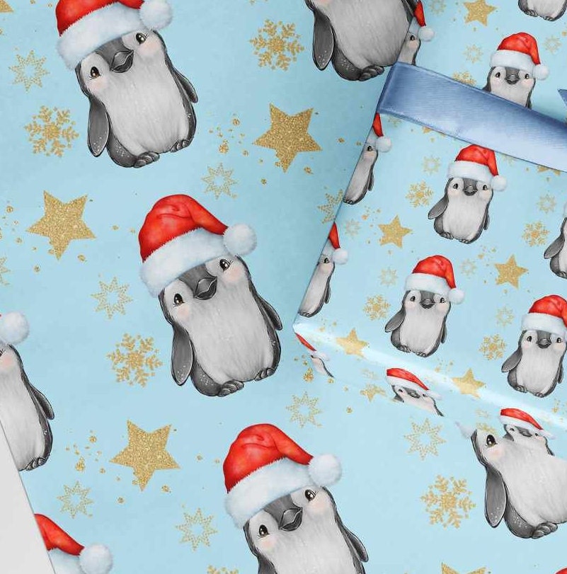 ECO Christmas Blue Penguin wrapping paper A3 & ROLLS eco friendly thick quality gift wrap Christmas present wrap gift wrap for the family