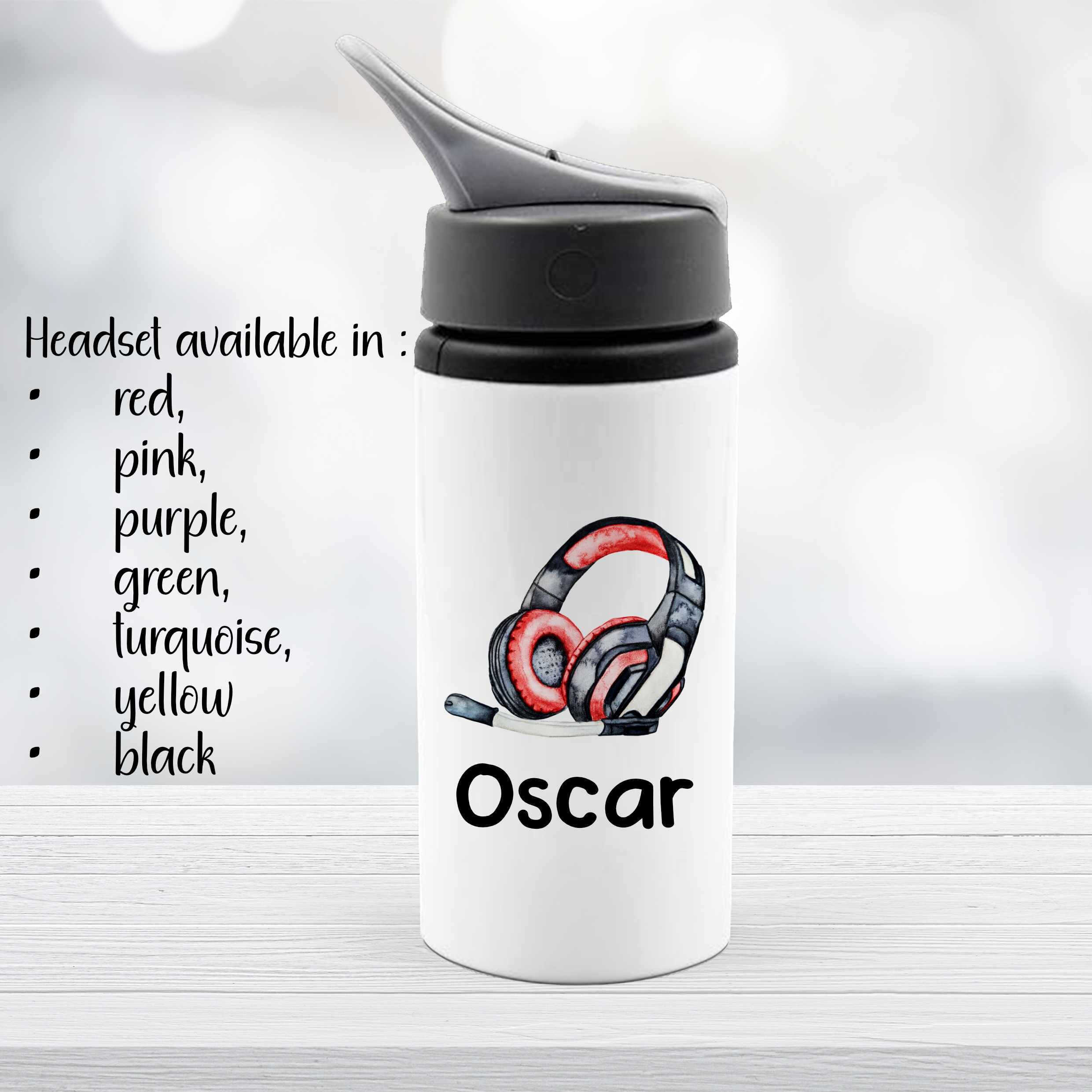 Gamer headset School Drinks Bottle Personalised school Boy Girl Drink Container alimumim metal water customise gamer birthday christmas v3