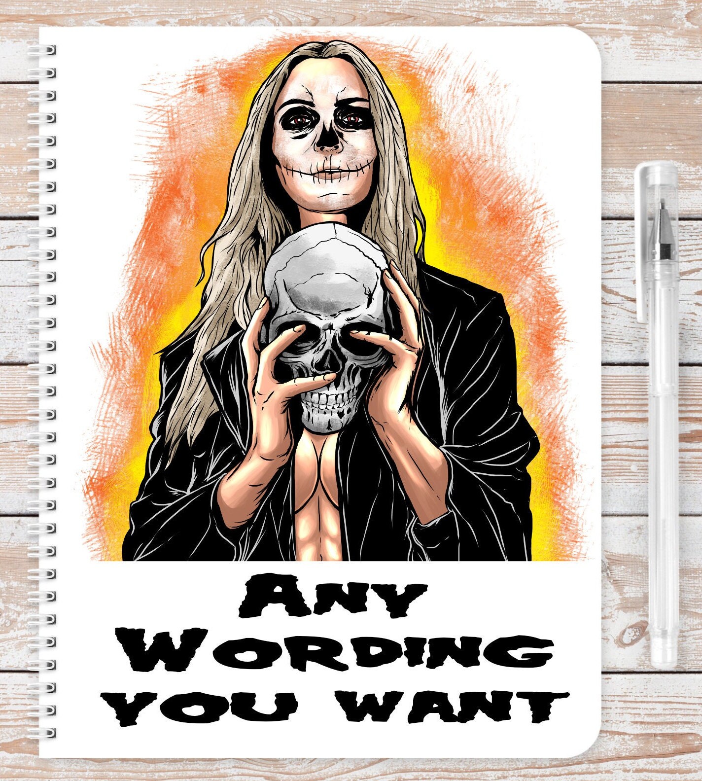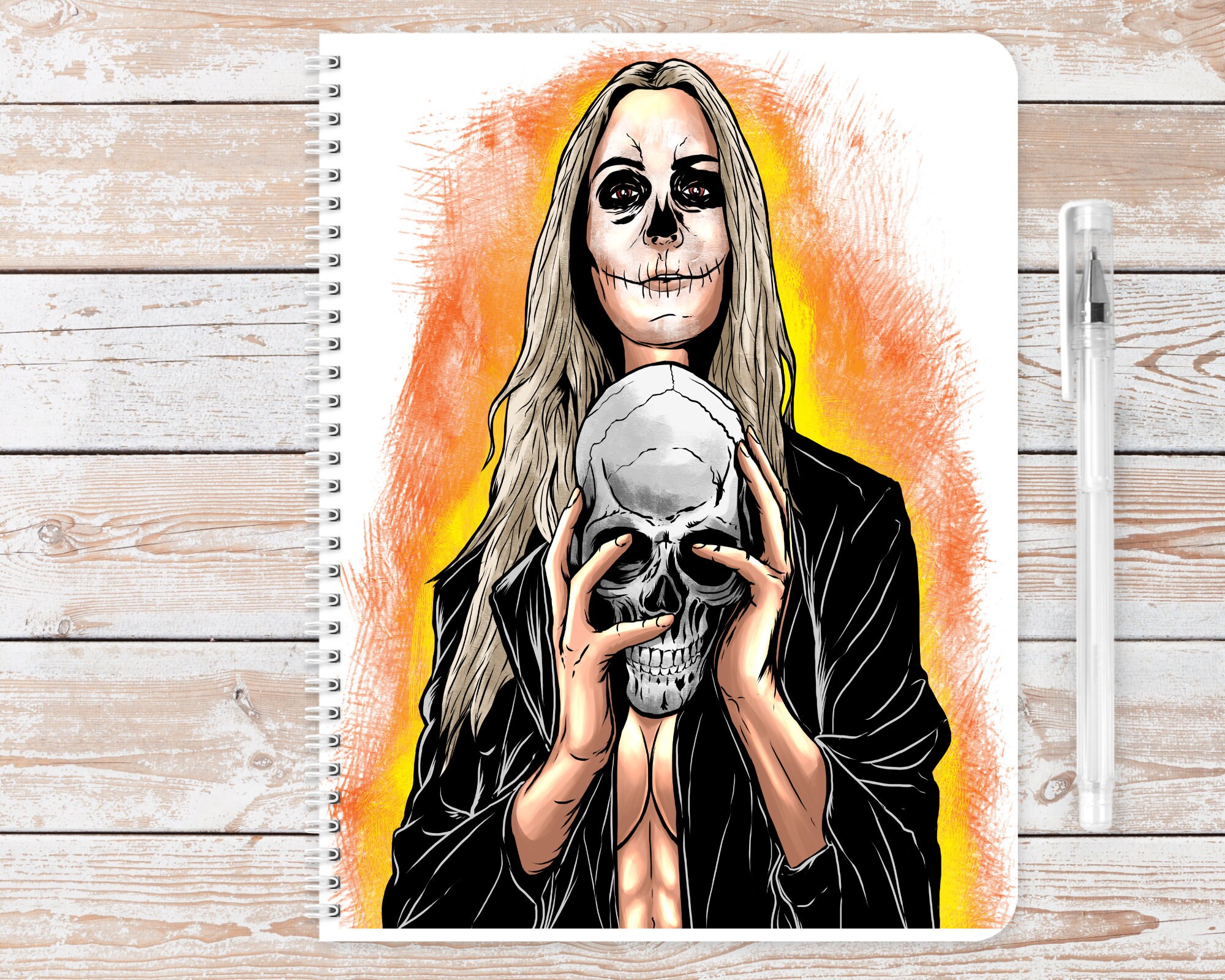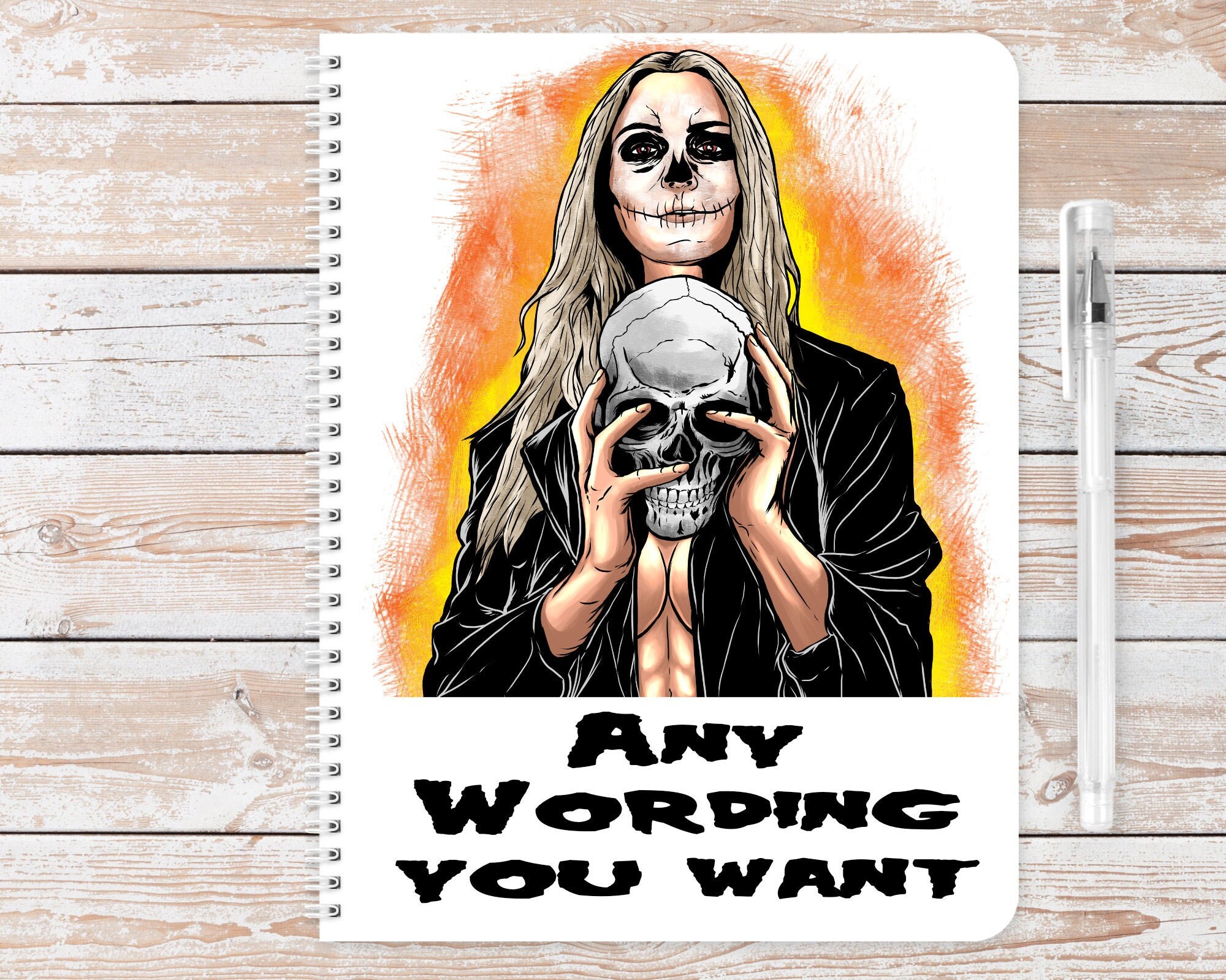 Girl Misfit Skull Horror A5 notebook. Contains 60 sheets of lined or blank 100% recycled paper. Eco friendly. bio-degradable. Ideal gift