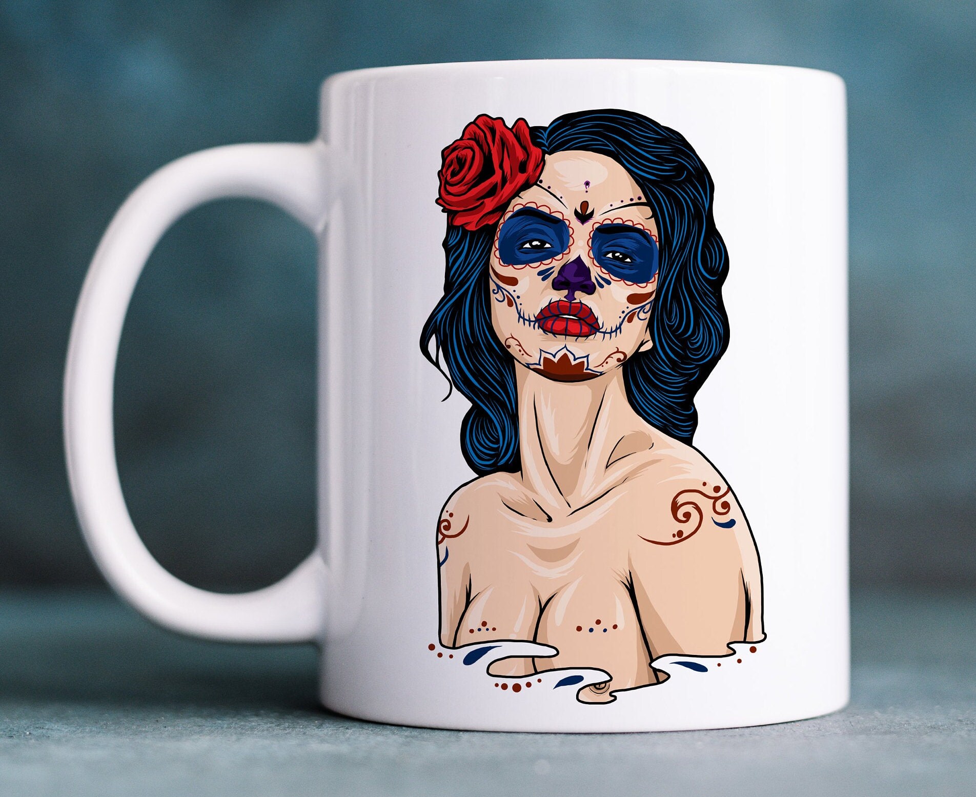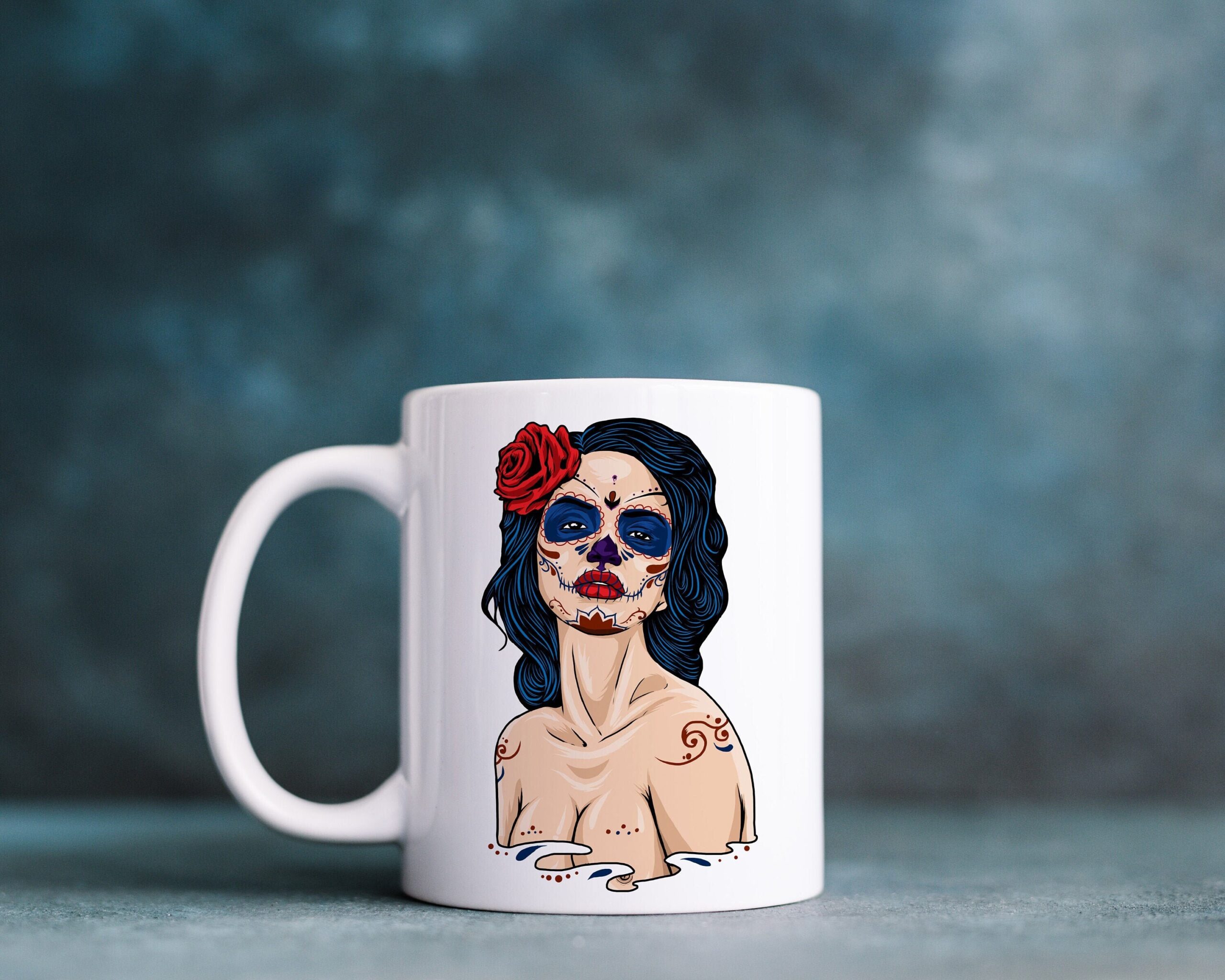 Girl with Red Rose, Day of the Dead Mug. Gothic Dia De Muertos