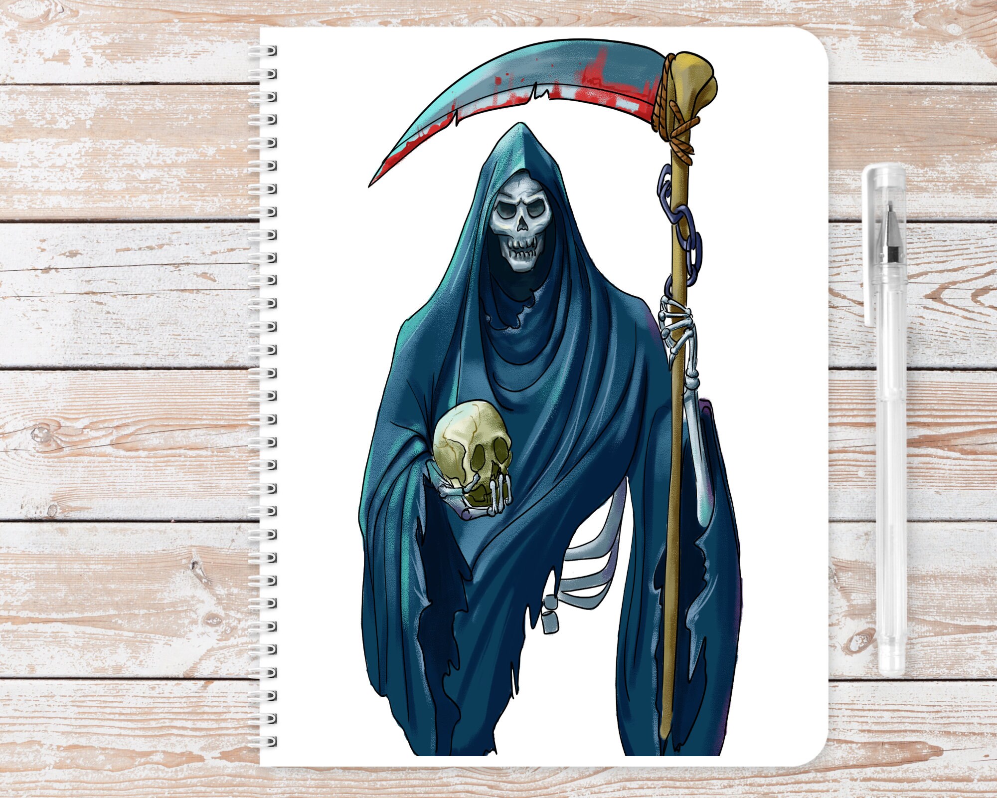 Grim Reaper Horror A5 notebook Contains 60 sheets of lined or blank 100% recycled paper Eco friendly bio-degradable Ideal gift 4 Horror fan