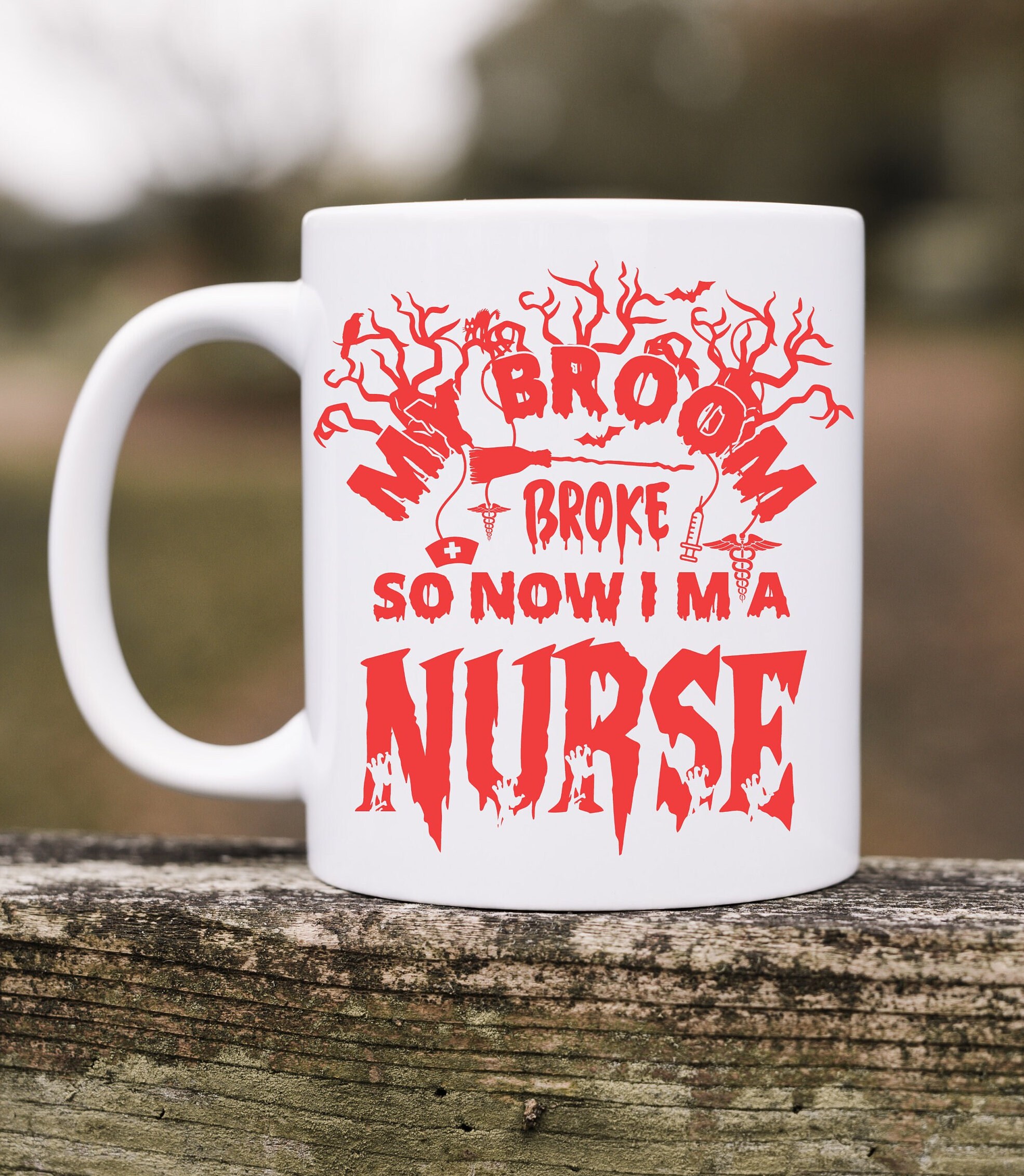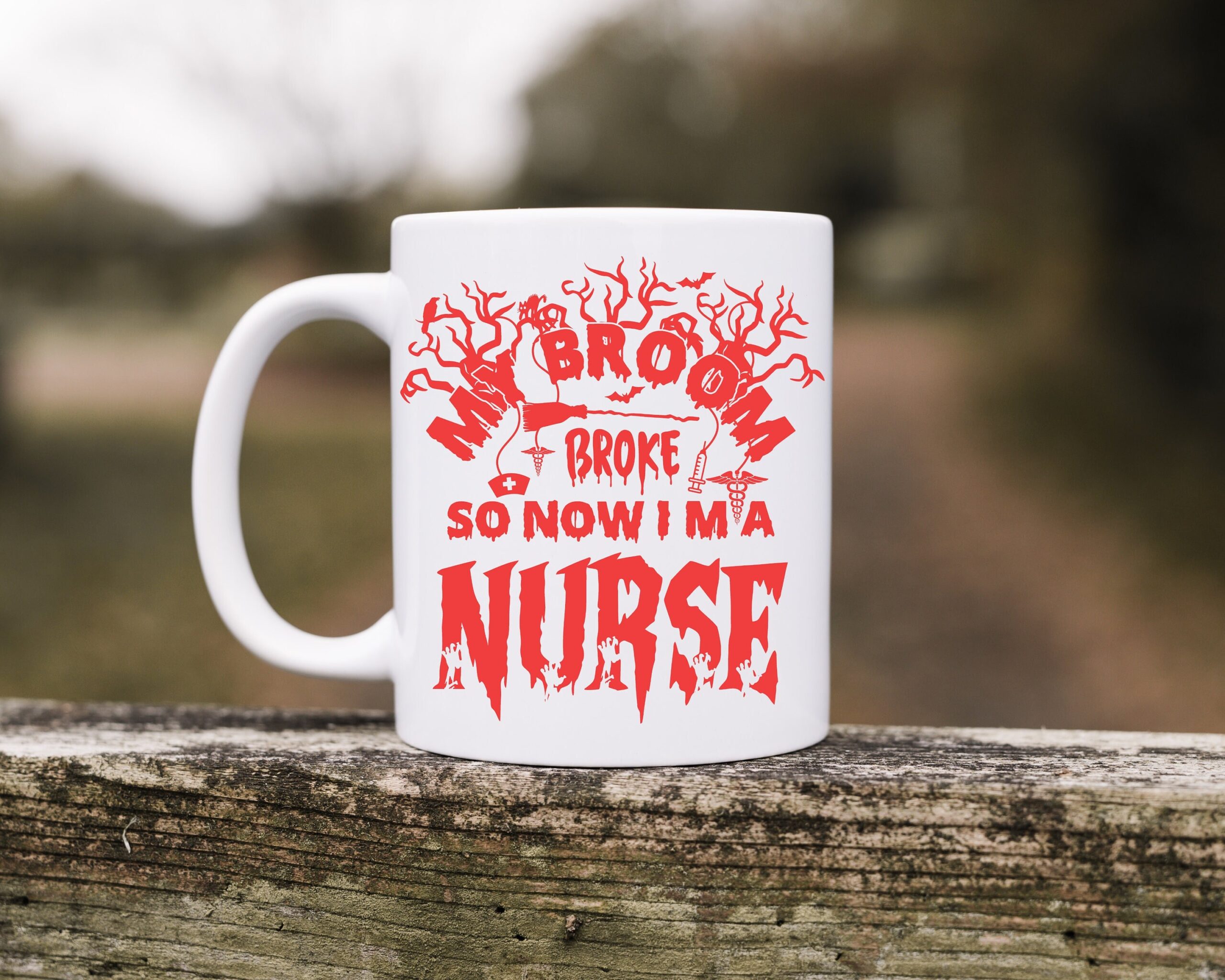 Humourous Nurse Witch design mug (My broom is broken so now I am a nurse)