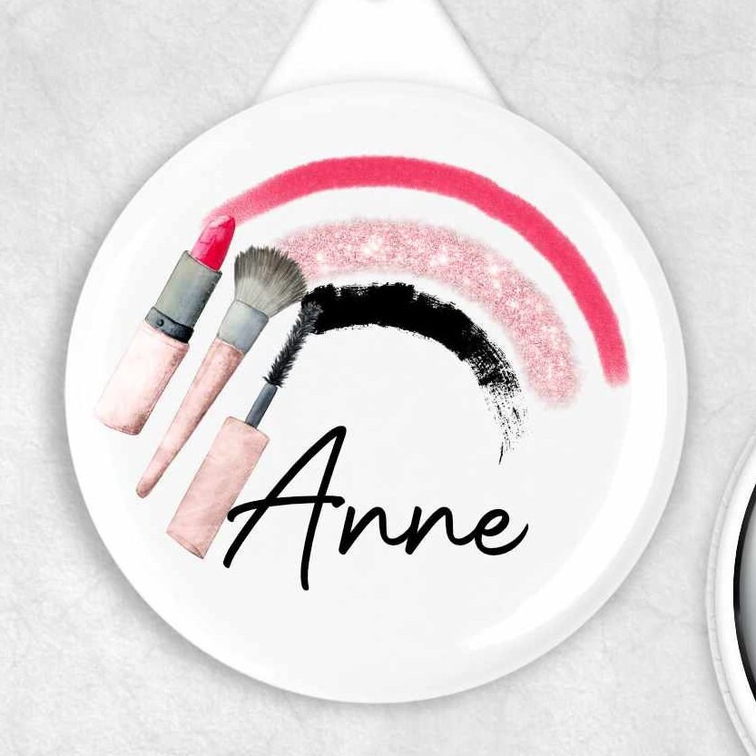 Make up set mirror, mirror keyring or bottle opener – personalised.