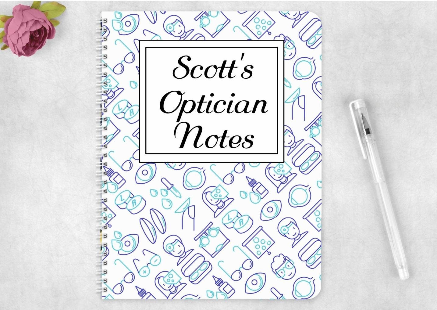 Optician notes notebook personalised Recyclable eco friendly notepad Wired book journal optical eyes trainee Orthoptics student technician
