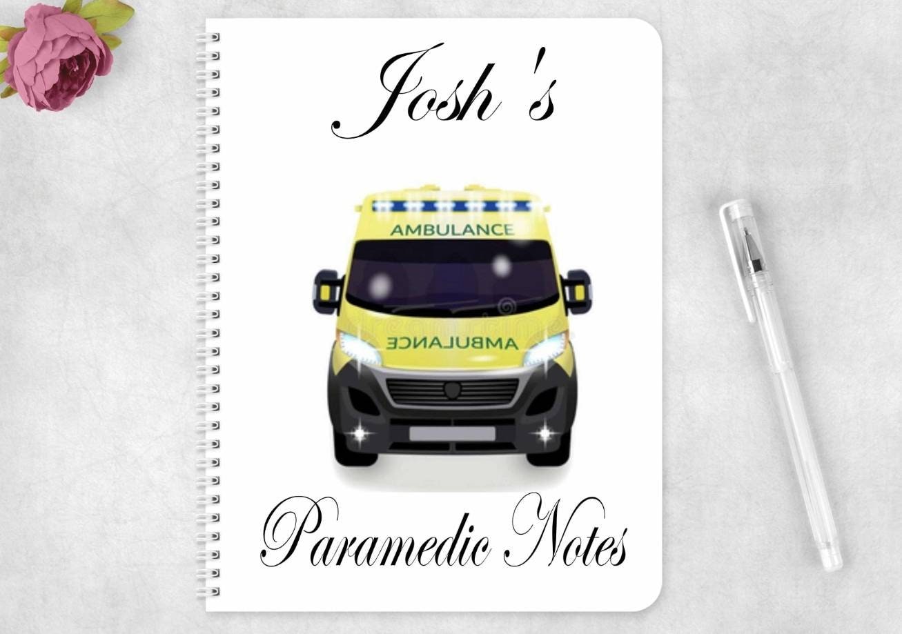 Paramedic notes notebook personalised Recyclable eco friendly notepad Wired book journal ECA Ambulance driver trainee student technician