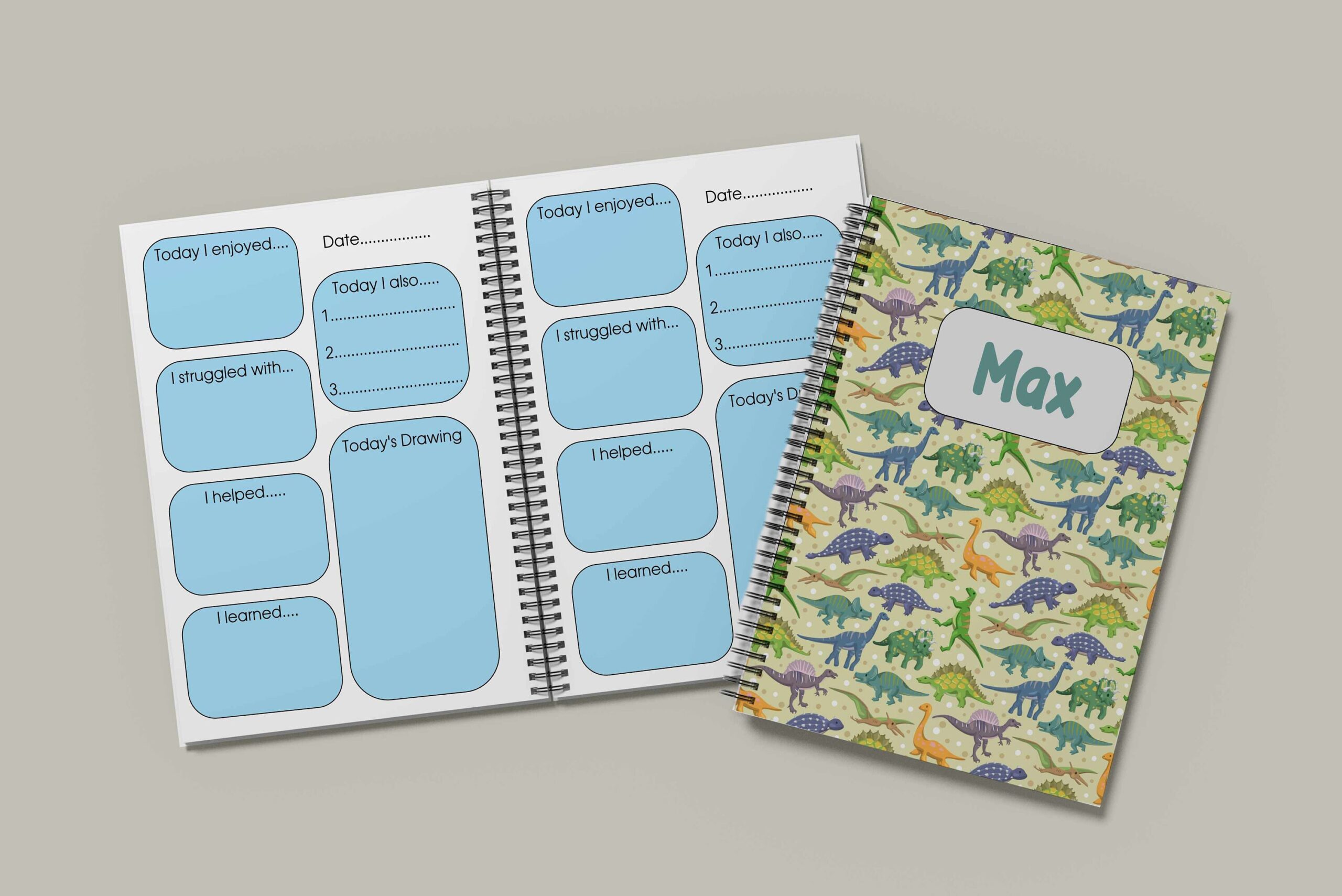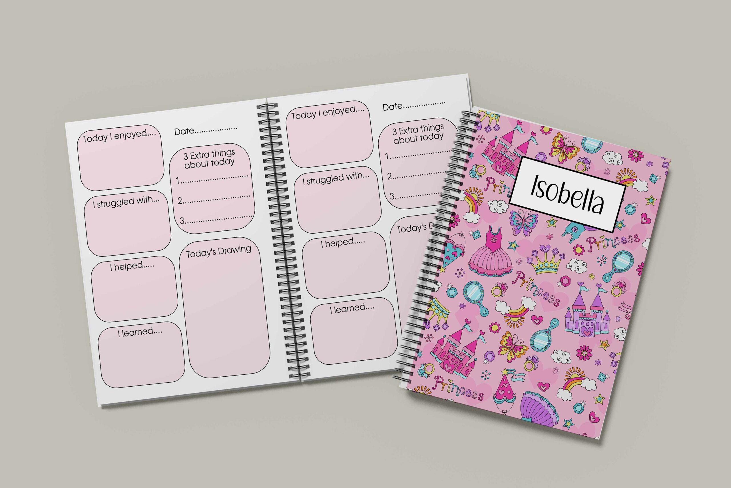 The jotter / notepad has 100 pages (50 sheets) and has space to add about what they have done, what they learned, struggled with, who or what they helped, and a space for other things they have done. Theres also a space for them to draw a daily picture.