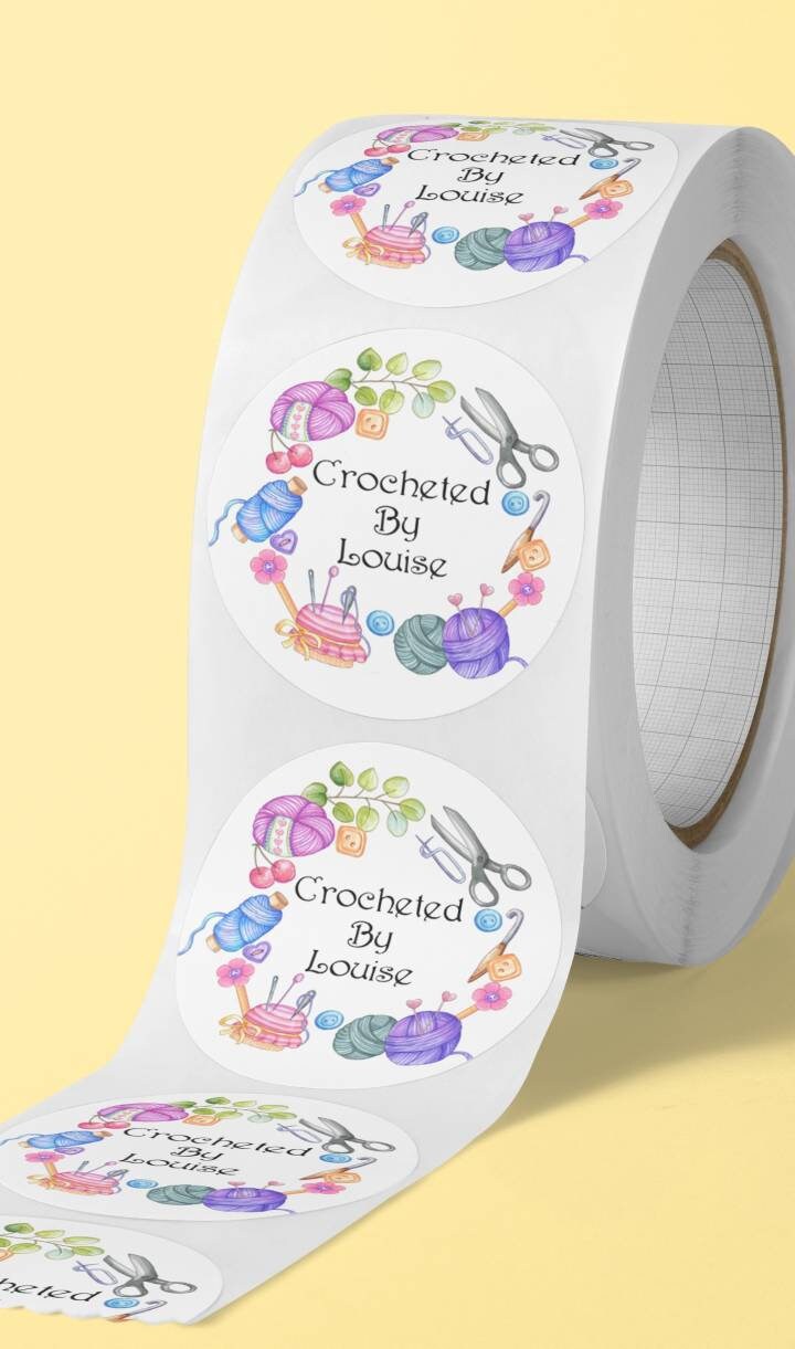 Personalised Crocheted by customised name. Crochet label. Packaging. Branding crochet sticker envelope box. Business packaging 35mm 50mm