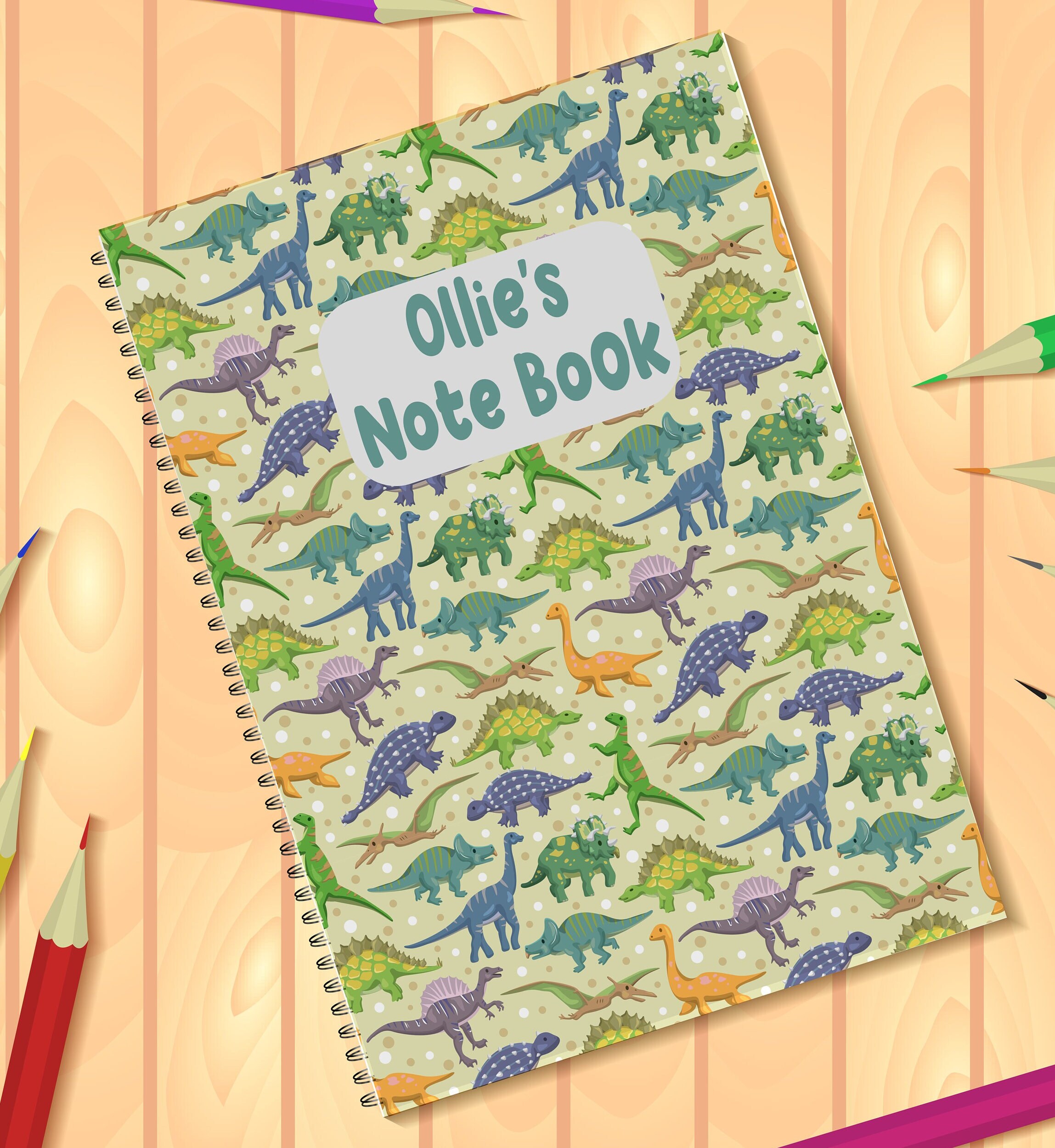 Personalised Dinosaur Childs A5 Notebook Contains 50 sheets of lined/blank 100% recycled paper Eco friendly. bio-degradable Great gift